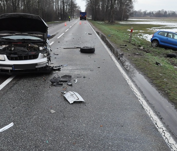 Po tym passat zjechał na przeciwny pas jezdni, gdzie zderzył się z volkswagenem polo, kierowanym przez 23-letnią mieszkankę gminy Łomazy. W chwili zdarzenia kierujący samochodami byli trzeźwi, potwierdziło to przeprowadzone przez mundurowych badanie. W wyniku wypadku do szpitala z obrażeniami ciała trafiła pasażerka passata.