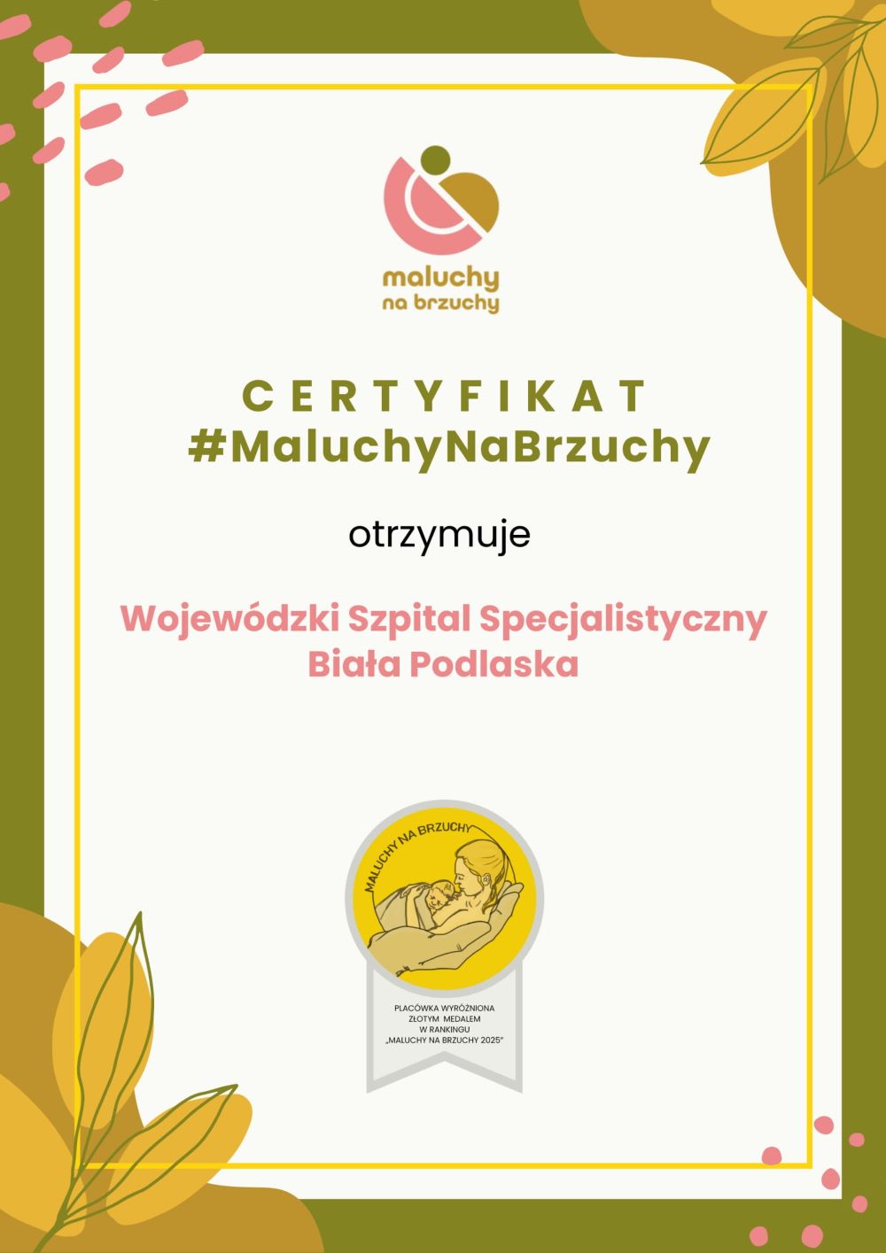 Wojewódzki Szpital Specjalistyczny w Białej Podlaskiej został wyróżniony Złotym Medalem w Rankingu „Maluchy na Brzuchy”, prowadzonym przez Fundację Rodzić po Ludzku. Nagroda została przyznana na podstawie raportu z ankiet „Głos Matek” i dotyczy wspierania dwugodzinnego, nieprzerwanego kontaktu skóra do skóry po porodzie drogami natury.