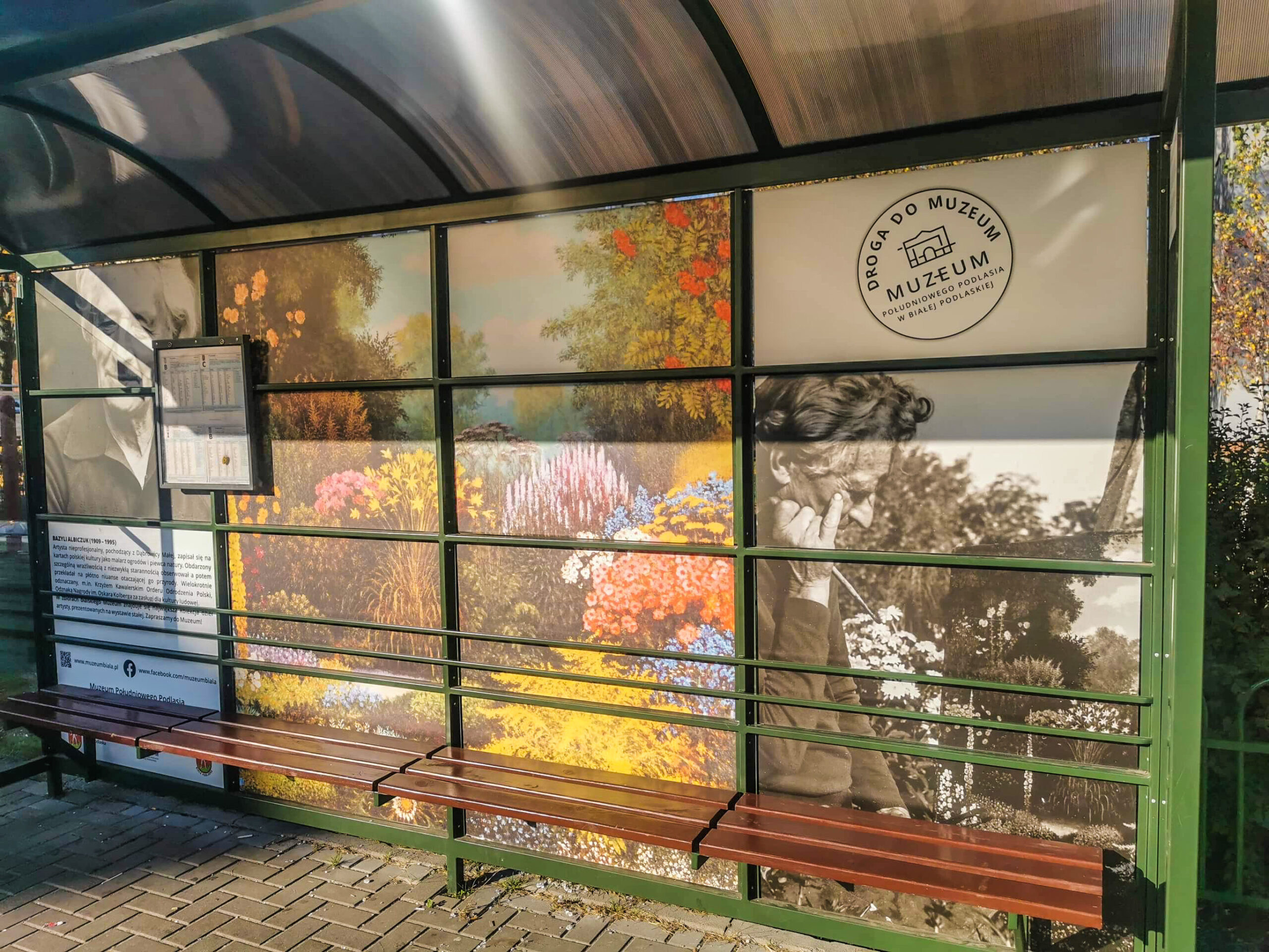 Trzy wiaty przystankowe: przy Al. 1000-lecia, ul. Sidorskiej i ul. Terebelskiej zmieniły się w mini-galerie. Ozdobione motywami z obrazów Bazylego Albiczuka wyznaczają „Drogę do muzeum”. Tak nazwano projekt realizowany przez Muzeum Południowego Podlasia i spółkę miejską MZK.