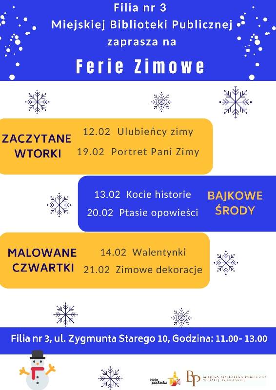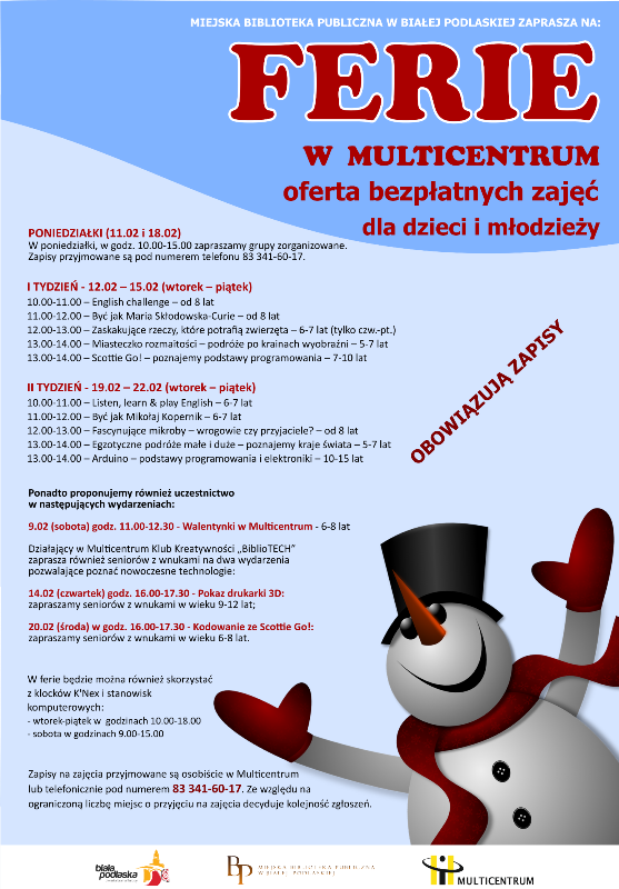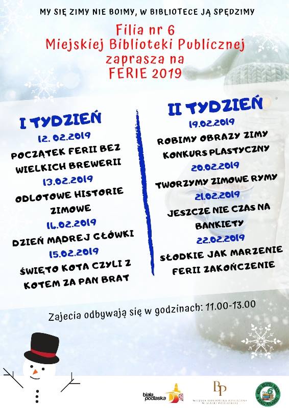 Miejska Biblioteka Publiczna zaprasza dzieci i młodzież do ciekawego spędzenia ferii zimowych. Mnóstwo zabaw czeka na uczestników zajęć przygotowanych specjalnie z myślą o tym, aby kreatywnie spędzić ten zimowy czas.