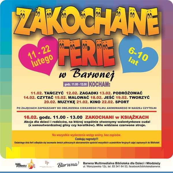 Ferie organizowane są dla dzieci i młodzieży w Multicentrum, Bibliotece Barwnej oraz w Filii nr 1, 3 oraz 6 Miejskiej Biblioteki Publicznej.