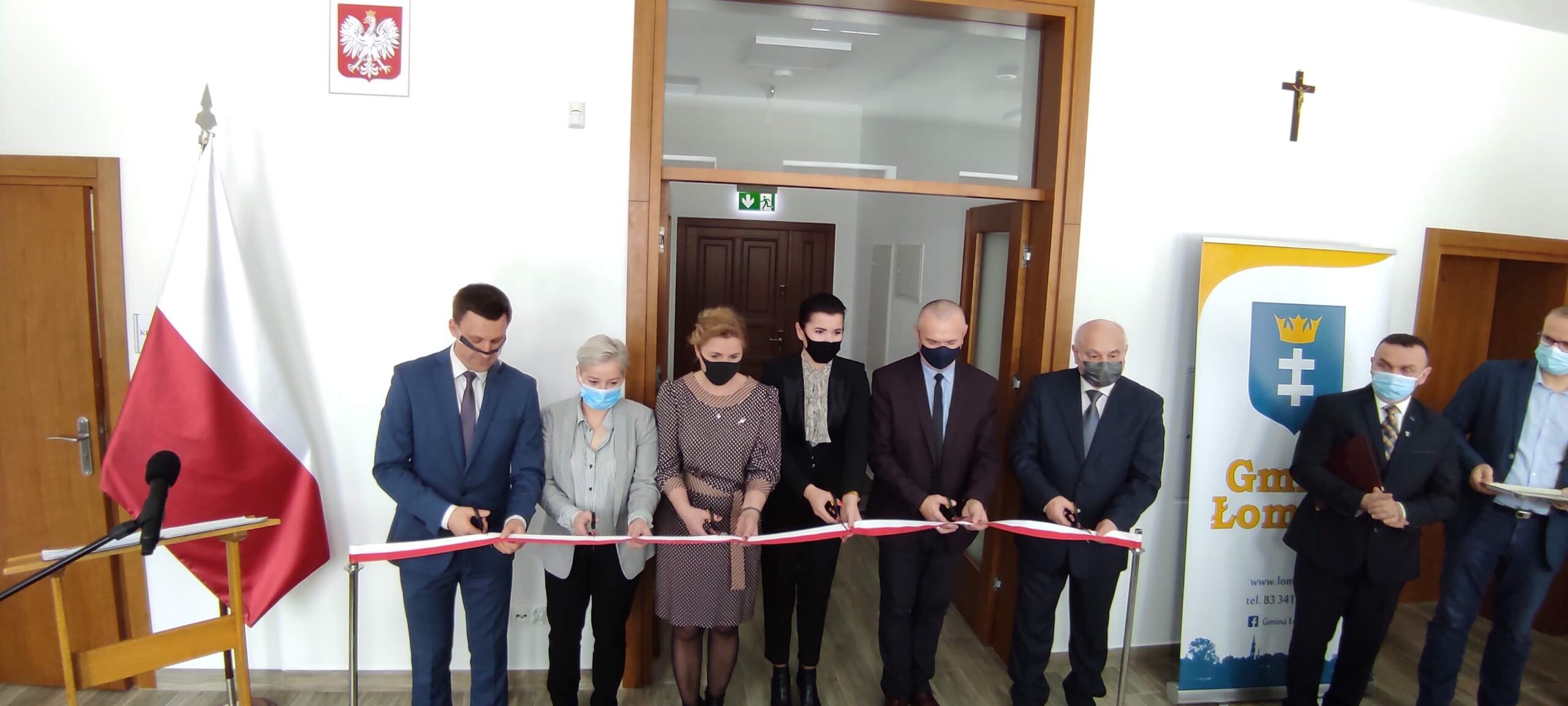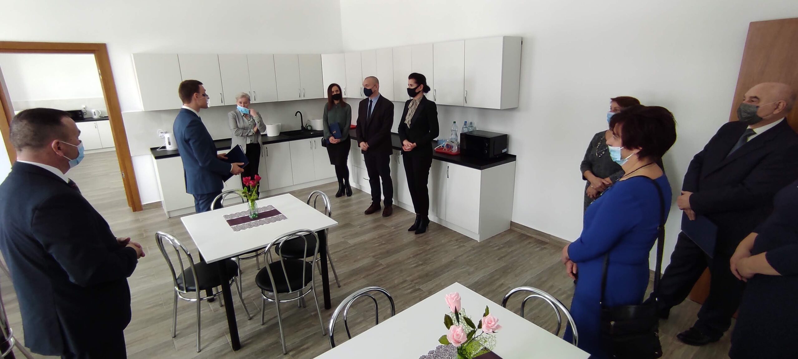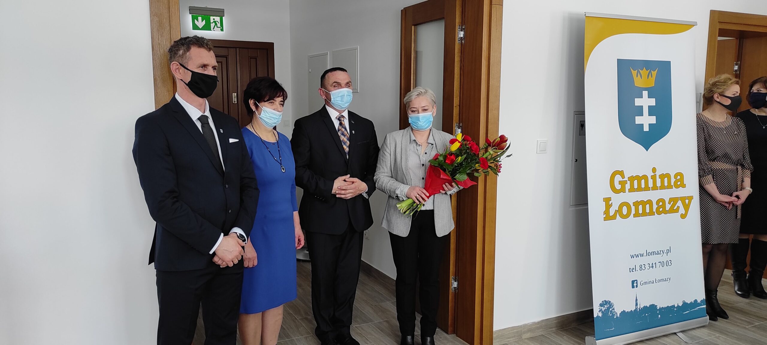 Oficjalnego otwarcia nowo powstałej jednostki organizacyjnej pomocy społecznej i przywitania przybyłych gości dokonał Wójt Gminy Łomazy Jerzy Czyżewski. Wśród gości byli m.in.: Dyrektor Biura Pełnomocnika Rządu do Spraw Osób Niepełnosprawnych Małgorzata Paprota, Dyrektor Delegatury Lubelskiego Urzędu Wojewódzkiego w Białej Podlaskiej Małgorzata Bogusz, Zastępca Dyrektora Wydziału Polityki Społecznej LUW w Lublinie Mariusz Kidaj, Dyrektor Oddziału Lubelskiego Państwowego Funduszu Rehabilitacji Osób Niepełnosprawnych Ryszard Dados, Przewodniczący Rady Gminy Łomazy Andrzej Wiński wraz z radnymi, sołtys wsi Dubów Krystyna Stankiewicz, Kierownik Gminnego Ośrodka Pomocy Społecznej w Łomazach Urszula Najdyhor i Kierownik Centrum Opiekuńczo-Mieszkalnego w Dubowie Barbara Gromadzka. Podczas spotkania ksiądz proboszcz Tadeusz Tomasiuk poświecił obiekt. Gościom zostały wręczone podziękowania za owocną współpracę przy powstaniu COM. Zaproszeni goście zwiedzili budynek.