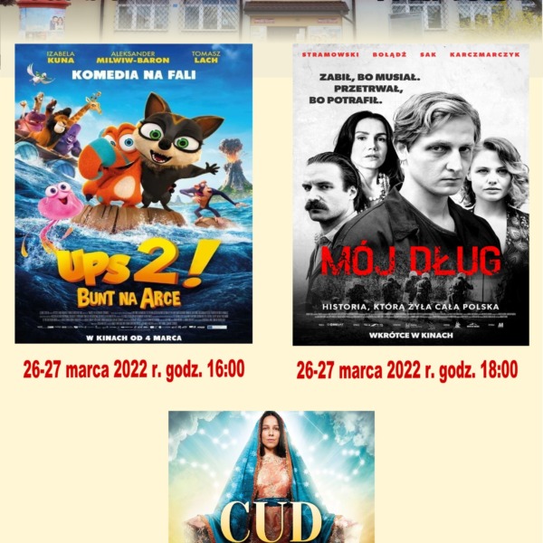 Natomiast 26-27 marca będziemy mieli okazję obejrzeć takie filmy jak “UPS 2! Bunt na arce”, “Mój Dług” czy “Cud Guadalupe”.