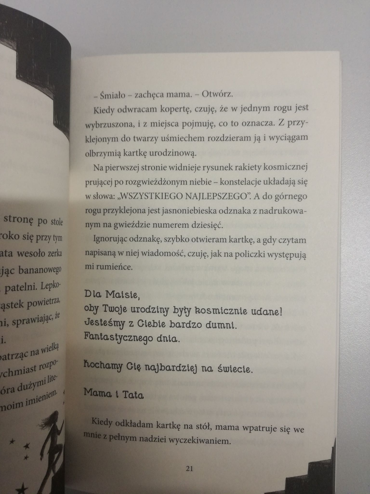 Pierwszą książką wartą polecenia jest powieść „Nieskończony wszechświat Maisie Day” – Christopher Edge. Została wydana 22 sierpnia bieżącego roku przez wydawnictwo Zielona Sowa. Liczy 208 stron.