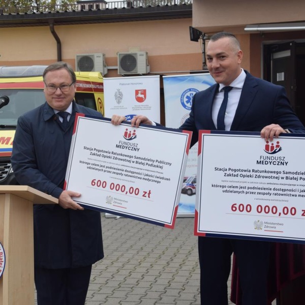 Tego dnia Senator RP Grzegorz Bierecki przekazał dwa symboliczne czeki po 600 tys zł. Dzięki uzyskanym funduszom z Funduszu Medycznego zostaną zakupione dwa ambulanse – jeden do Terespola oraz drugi do Piszczaca. Stacja Pogotowia Ratunkowego w Białej Podlaskiej wcześniej złożyła dwa wnioski o dofinansowanie zakupu ambulansów