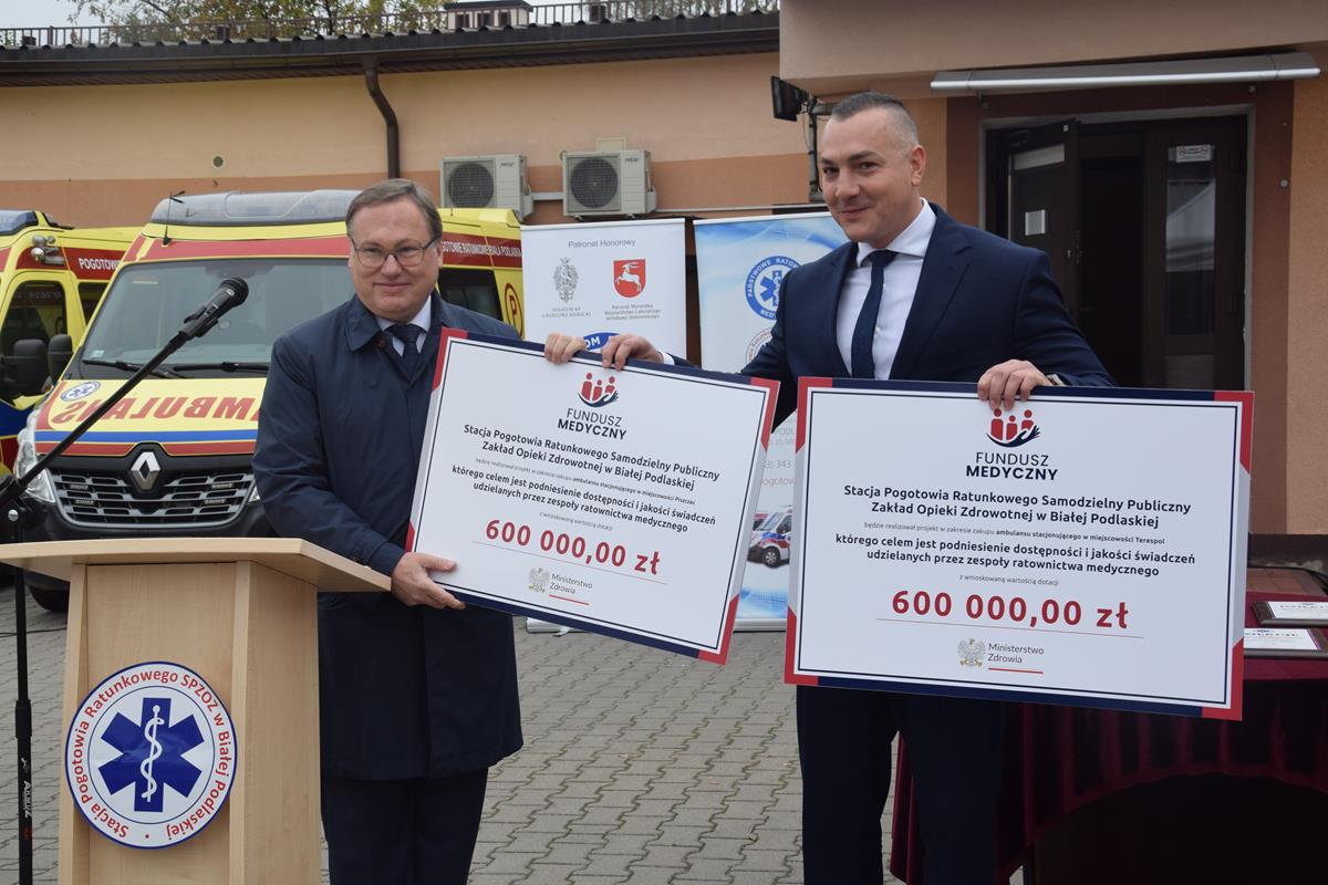 Tego dnia Senator RP Grzegorz Bierecki przekazał dwa symboliczne czeki po 600 tys zł. Dzięki uzyskanym funduszom z Funduszu Medycznego zostaną zakupione dwa ambulanse – jeden do Terespola oraz drugi do Piszczaca. Stacja Pogotowia Ratunkowego w Białej Podlaskiej wcześniej złożyła dwa wnioski o dofinansowanie zakupu ambulansów