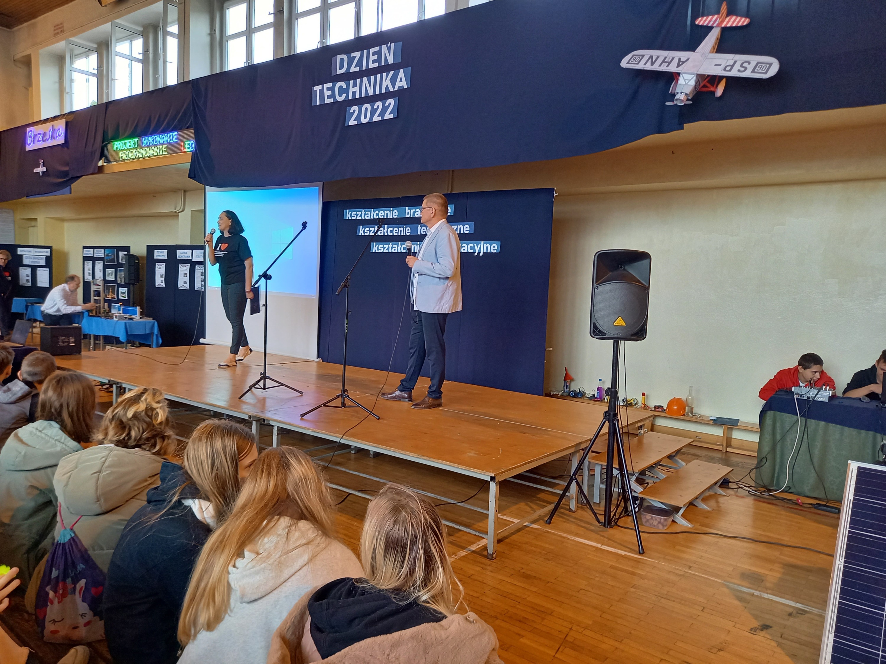 Dzień Technika to także pokazy, prezentacje i konkursy tematyczne oraz występy artystyczne, przygotowane dzięki zaangażowaniu nauczycieli i uczniów szkoły.