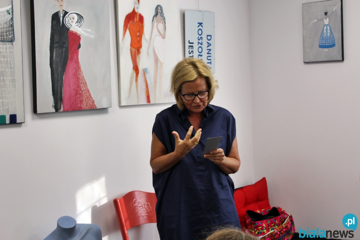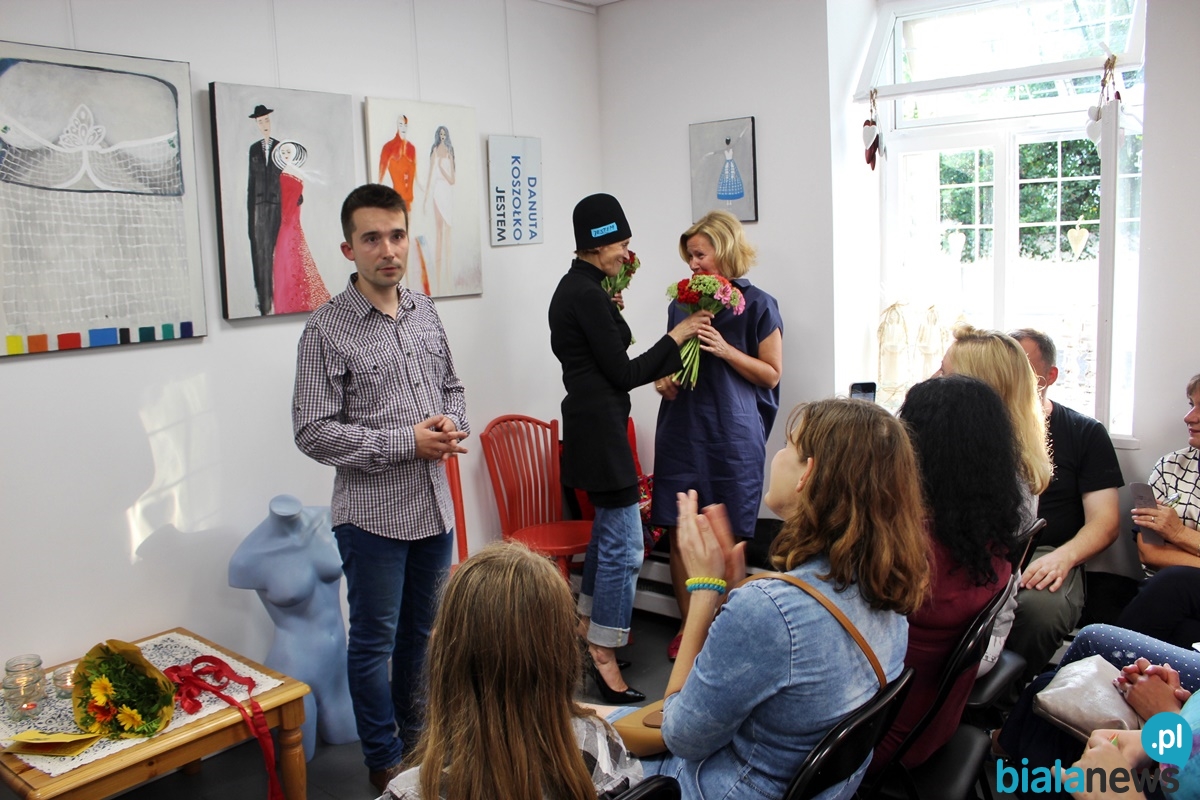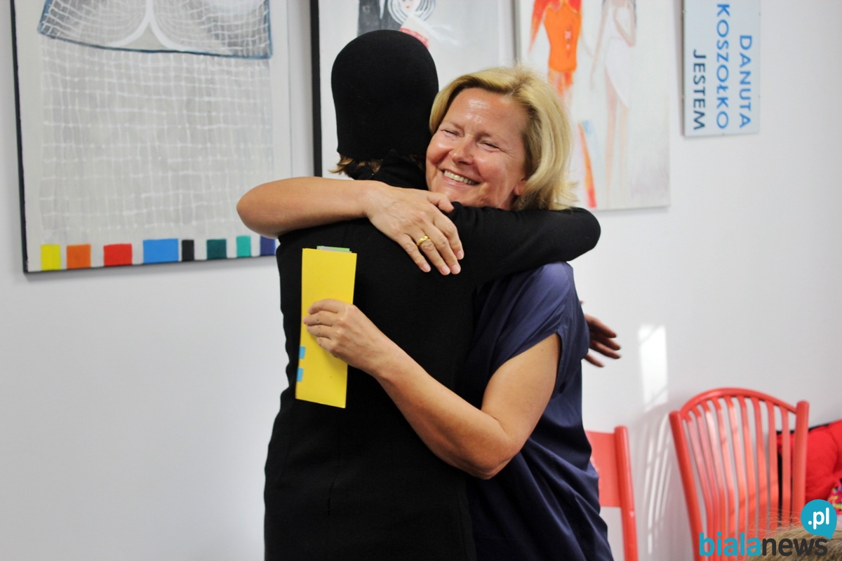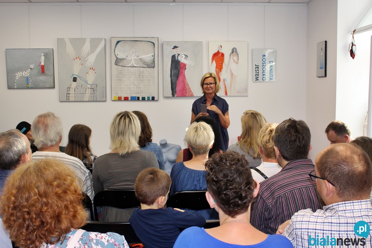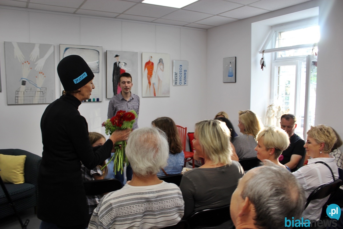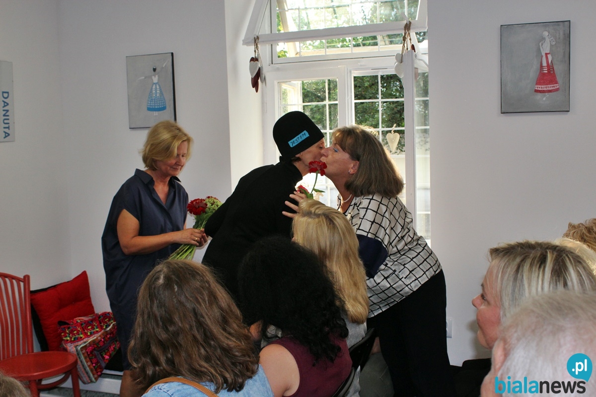 Spotkanie z Danutą Koszołko, energiczną artystką, przyciągnęło do bialskiej galerii szerokie grono publiczności. Nie zabrakło znanych postaci, takich jak Barbara Bursztynowicz i Daria Galant.
