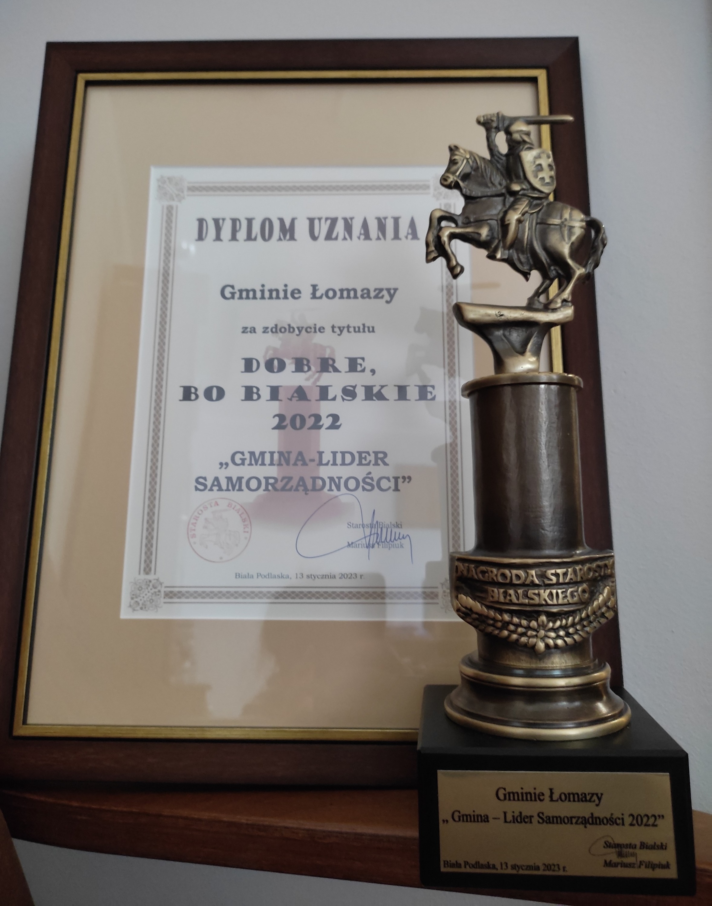 Podczas tegorocznej gali „Dobre, bo bialskie” wręczone zostały wyróżnienia za działalność w 2022 roku. Gmina Łomazy otrzymała nagrodę w kategorii „Gmina – Lider Samorządności”.