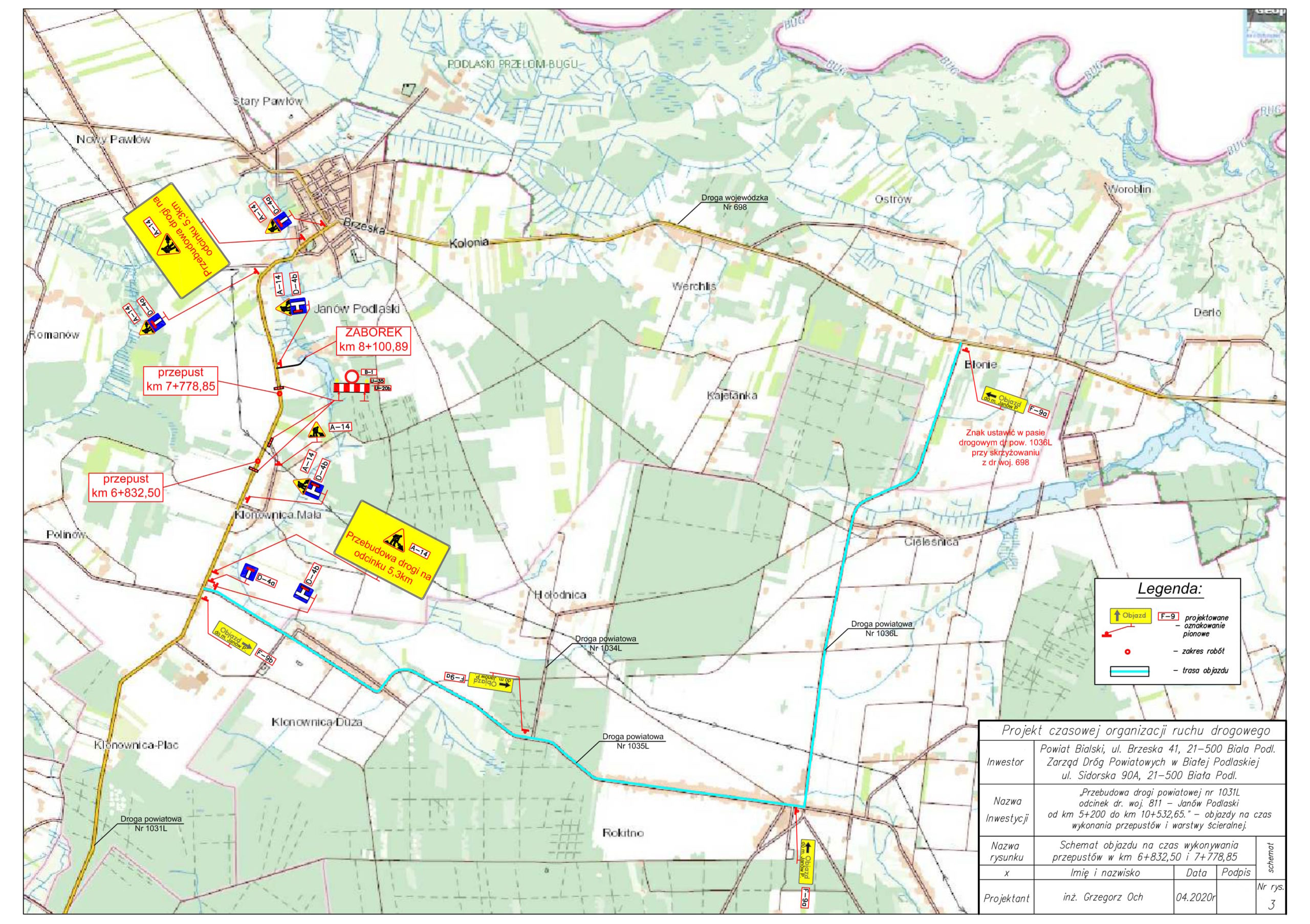 W etapie III od dnia 24.04.2020r. do dnia 29.04.2020r zostanie zamknięty odcinek od drogi pensjonat „Zaborek” do m. Janów Podlaski .