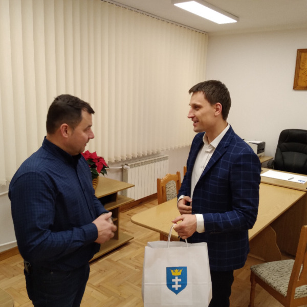 Na zakończenie wizyty w urzędzie Zbigniew Gołoś i Maciej Jaroszuk otrzymali okolicznościowe podziękowania z rąk Jerzego Czyżewskiego. Na co dzień obaj prowadzą działalność gospodarczą na terenie gminy Łomazy i regularnie włączają się w akcje charytatywne.