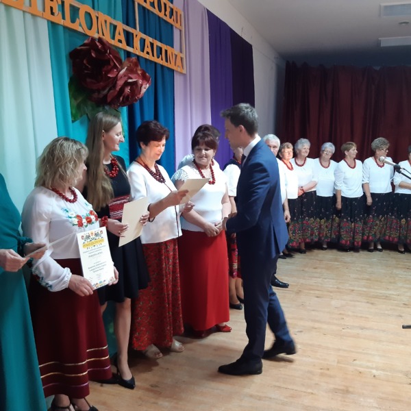 Wójt Gminy Łomazy-Jerzy Czyżewski wręczył wszystkim podziękowania, a zespół “Zielona Kalina” został wyróżniony grawertonem z życzeniami dalszego rozwoju.
