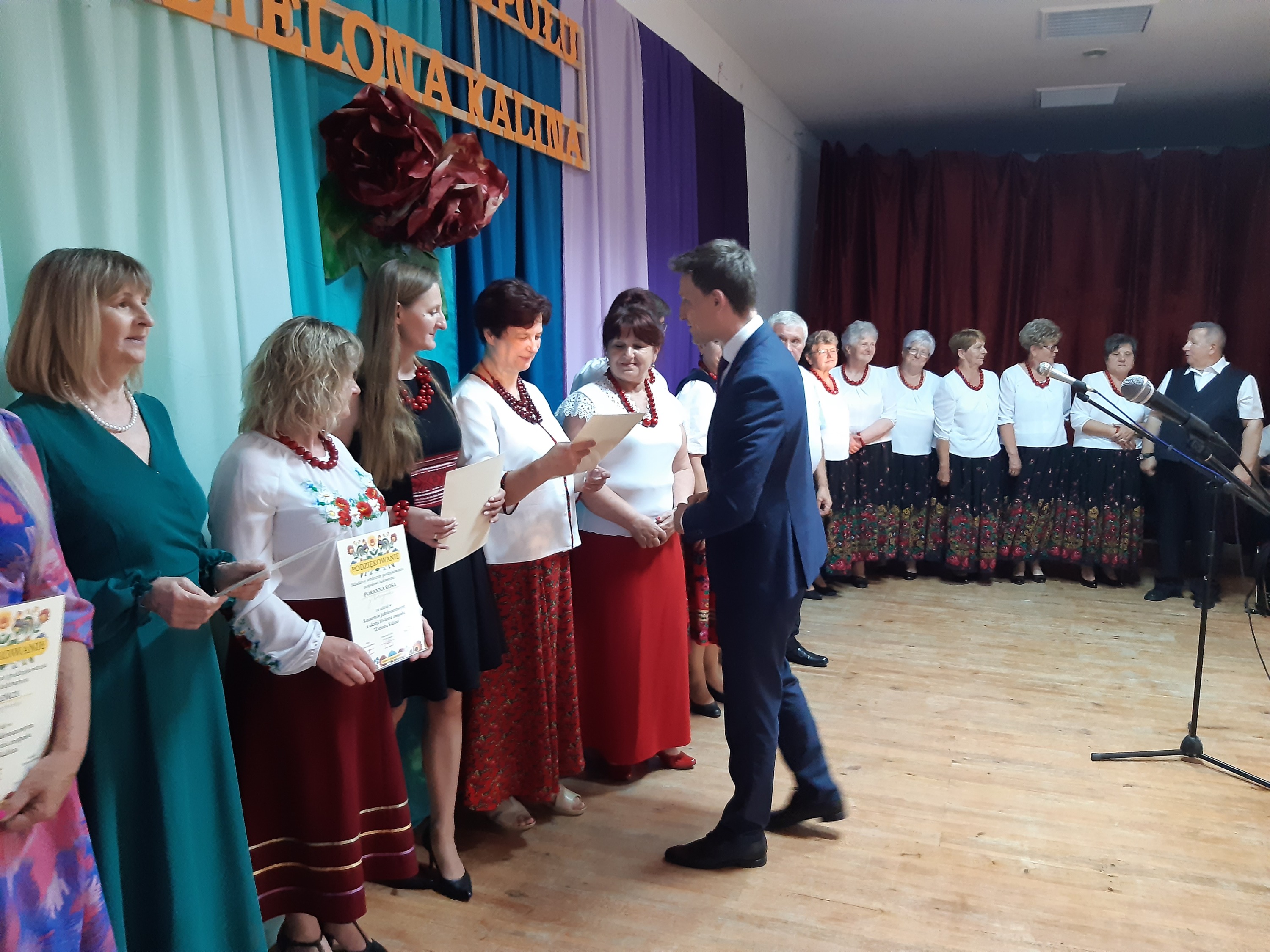 Wójt Gminy Łomazy-Jerzy Czyżewski wręczył wszystkim podziękowania, a zespół “Zielona Kalina” został wyróżniony grawertonem z życzeniami dalszego rozwoju.