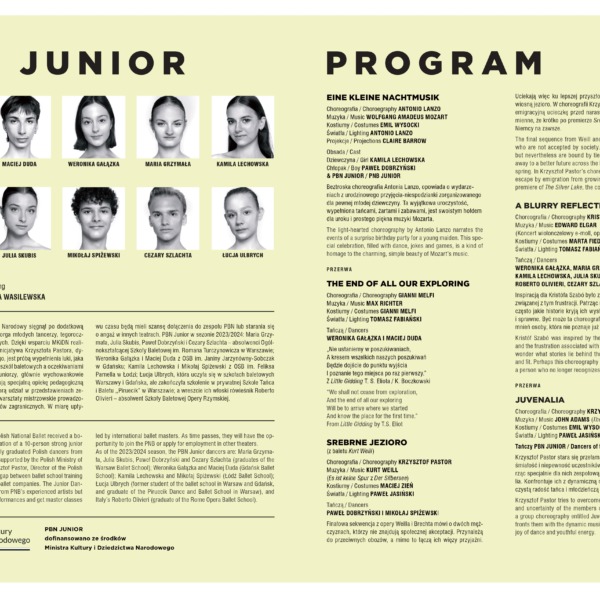 3 grudnia (niedziela) o godz. 17.00 Bialskie Centrum Kultury w Białej Podlaskiej zaprasza na występ pt. ❞𝙅𝙪𝙫𝙚𝙣𝙖𝙡𝙞𝙖❞ na którym zaprezentuje się młodzieżowa grupa Polskiego Baletu Narodowego w choreografii Krzysztofa Pastora. Jest to nowa formacja baletu młodzieżowego z Teatru Wielkiego  – Opery Narodowej w Warszawie.