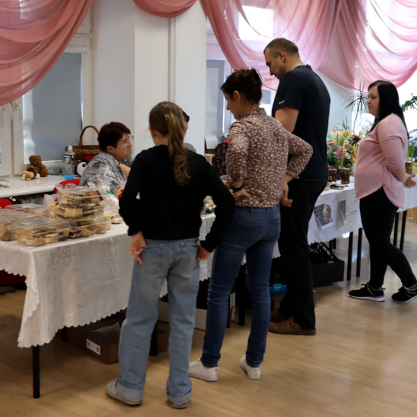 Podczas kiermaszu można było włączyć się w pomoc dla Pani Elżbiety Hordejuk z Dubowa – wystarczyło zakupić produkty przygotowane na specjalnym stoisku charytatywnym.