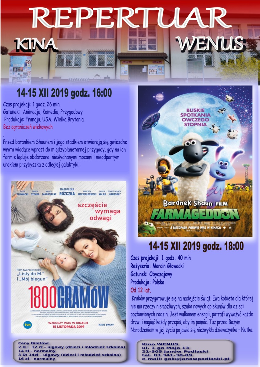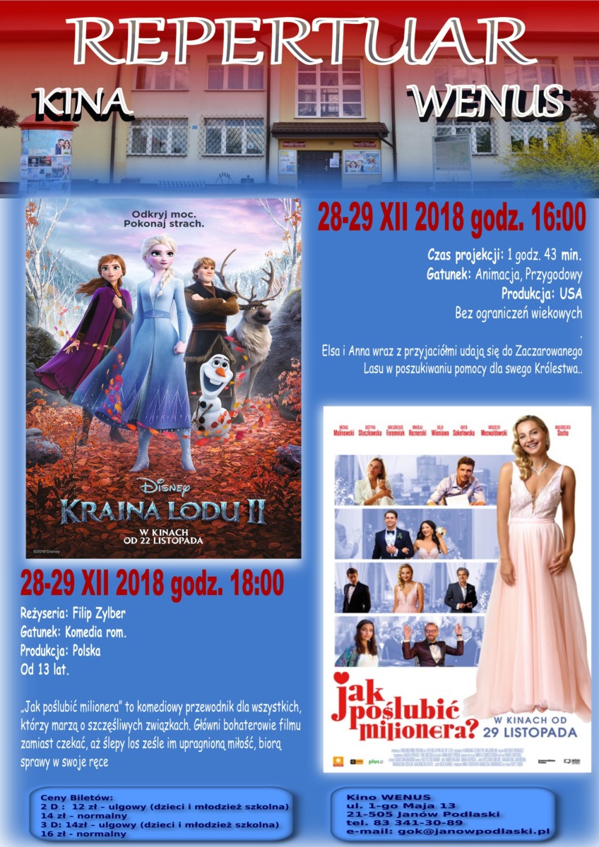 Kino Wenus w Janowie Podlaskim zaprasza na seans. W repertuarze: Kraina Lodu II, Jak poślubić milionera?, Farmagedon oraz 1800 gramów.