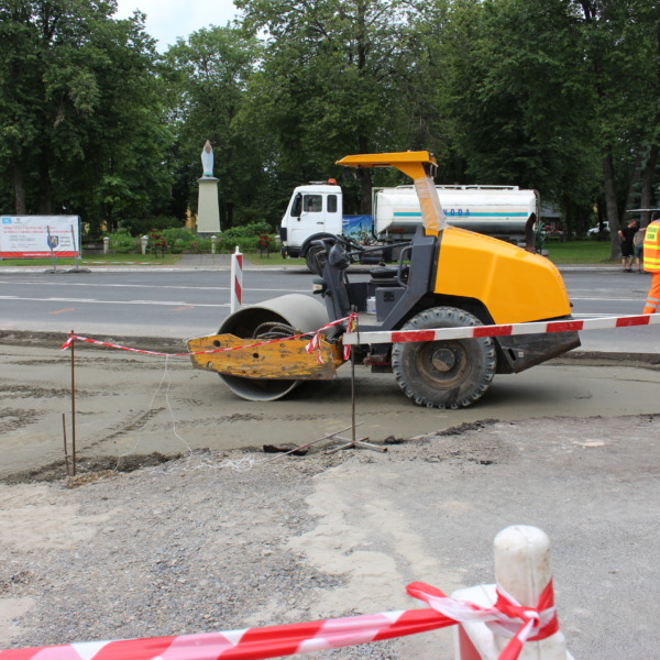1. Wymiana nawierzchni jezdni przy bazylice.