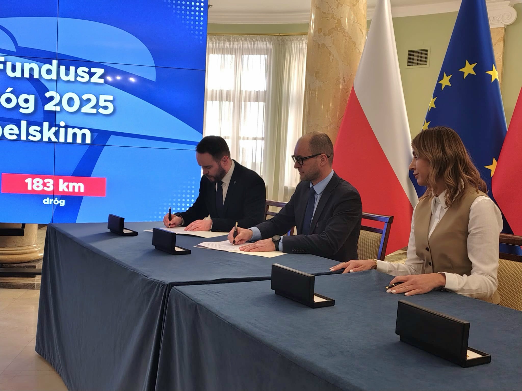 W dniu dzisiejszym(25 marca) podpisano dwie umowy na realizację inwestycji drogowych, które zostaną współfinansowane z Rządowego Funduszu Rozwoju Dróg Samorządowych. W imieniu gminy dokumenty podpisali Wójt Gminy wraz ze Skarbnik Agatą Olichwirowicz, a ze strony administracji rządowej – Wojewoda Lubelski Krzysztof Komorski.