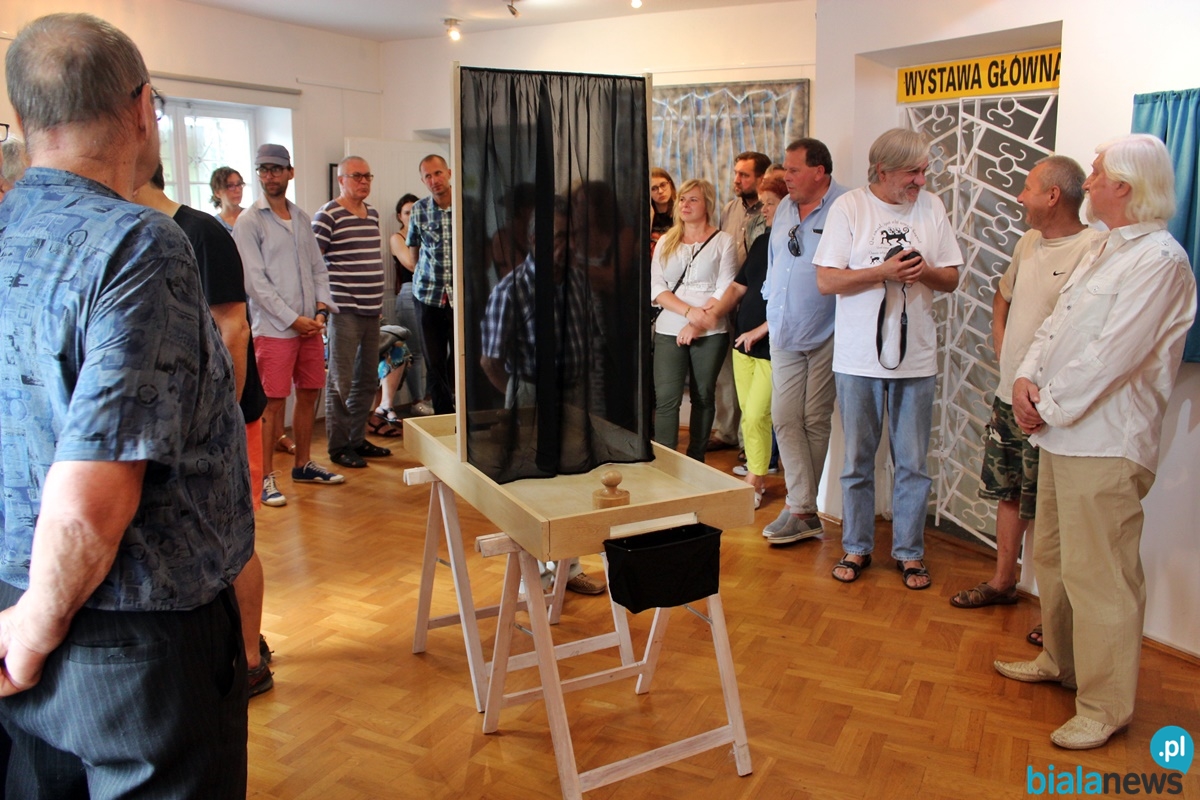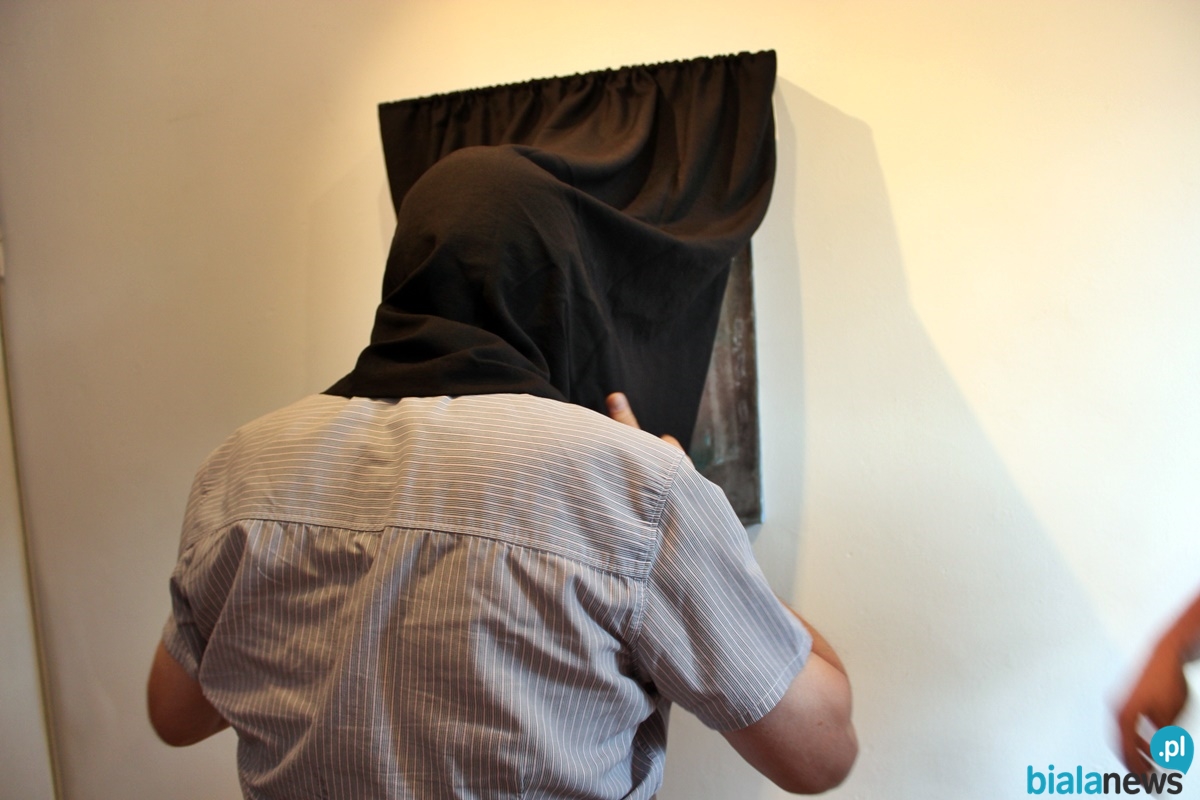 Piątkowy wernisaż wystawy cieszył się niemałym zainteresowaniem. Jak wiadomo, galeria ma górę i dół. Tym razem artysta miał do dyspozycji oba piętra. Na górze zainteresowani mogli zobaczyć obrazy, lecz aby je zobaczyć, musieli podejść do każdego obrazu z osobna i podnieść kurtynkę. Artysta zaproponował sposób oglądania obrazów. Zasugerował włożenie głowy pod kurtynkę, aby każdy indywidualnie mógł się przyjrzeć ukrytej pod nią pracy. Natomiast na dole uczestnicy byli świadkami wielkiego przedstawienia. Każdy z widzów mógł odebrać to na swój sposób. Zainteresowani oglądali z uwagą każdy przedmiot, który znajdował się w pomieszczeniu. Niektórych z nich można było używać. Artysta stanowczo powiedział, że to co przygotował nie nadaje się to publicznego omawiania. Zaznaczył, że nie o to w tym wszystkim chodzi. Stwierdził, że nie będzie narzucał odbioru widzom.