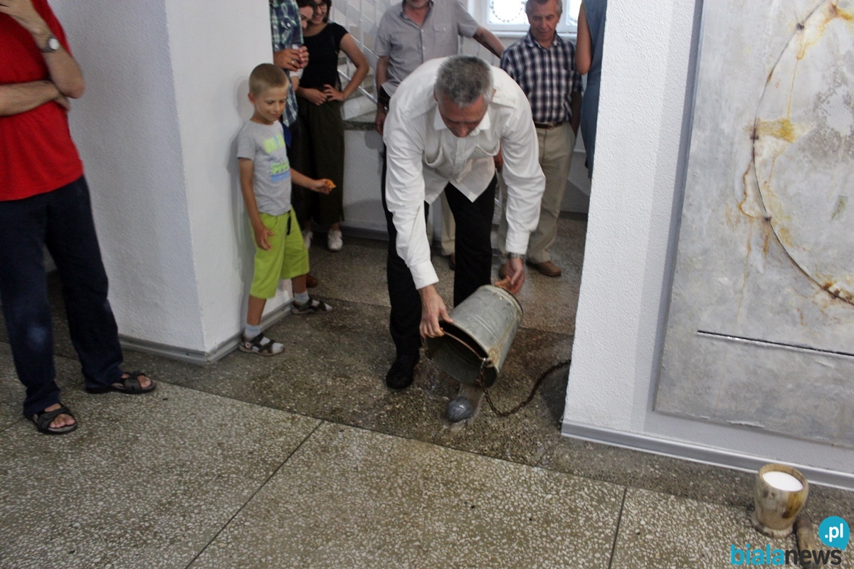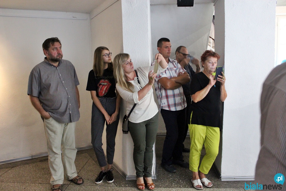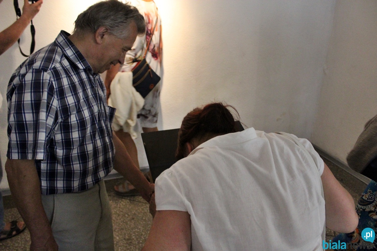 Łukasz Głowacki jest znaną postacią w Białej Podlaskiej. Nie raz prezentował swoje prace w Galerii Podlaskiej. – Przyjeżdżam do Białej Podlaskiej aż do znudzenia, mam w niej wielu znajomych. Występuję m.in. na parku sztuki. Właściwie te prace w Białej Podlaskiej są nieznane. Jest to efekt mojej 10-letniej pracy. Najnowsze obrazy znajdują się pod kurtynkami. Myślę, że te kwestie merytoryczne, dlaczego taka wystawa, dlaczego taki tytuł, to państwo może się sami zorientują po obejrzeniu wszystkiego na dole – powiedział na wstępie Łukasz Głowacki.