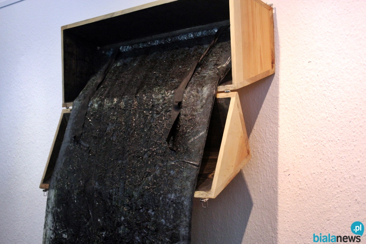 – Nie ma tutaj opowiadania literackiego. To są rzeczy które coś opowiadają, są narracją. Ta narracja się rozgrywa głównie pomiędzy substancjami, materiałami, dynamiką tego wnętrza, które w jakiś sposób na siebie wpływają i ja odpowiadam tymi rzeczami, tymi substytutami, które są przykładowo dla mnie ważne. Na przykład to wiadro jest z mojej chałupy, z mojej studni. One są jakoś tam napiętnowane, fetyszyzowane przeze mnie. Ja ich używam – tłumaczy artysta.
