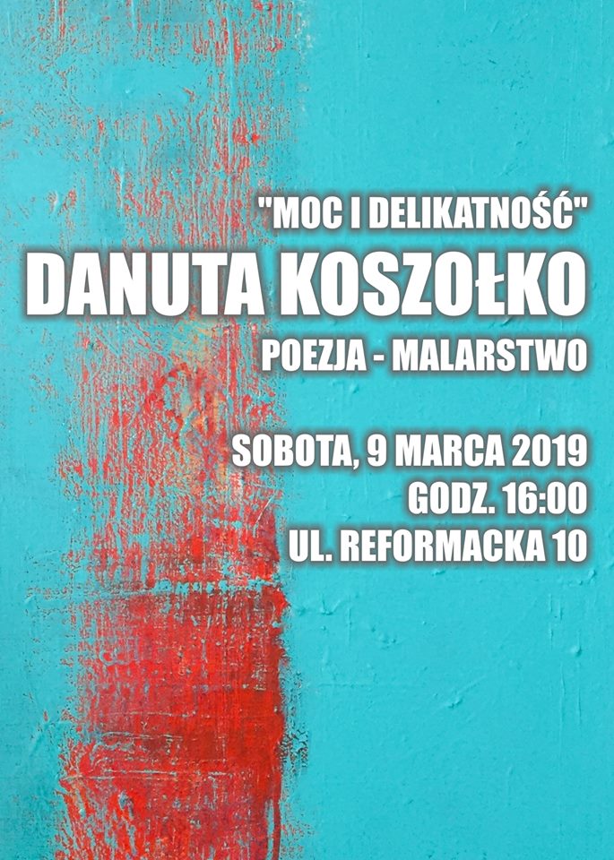 W najbliższą sobotę (9 marca) o godzinie 16 przy ul. Reformackiej 10 odbędzie się spotkanie z Danutą Koszołko zatytułowane “Moc i delikatność”.