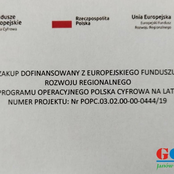 Gminny Ośrodek Kultury w Janowie Podlaskim pozyskał 6 laptopów w związku z realizacją projektu „Sieć na kulturę w podregionie bialskim”. Projekt był współfinansowany ze środków Europejskiego Funduszu Rozwoju Regionalnego w ramach Programu Operacyjnego Polska Cyfrowa (działanie 3.2 „Innowacyjne rozwiązania na rzecz aktywizacji cyfrowej”).