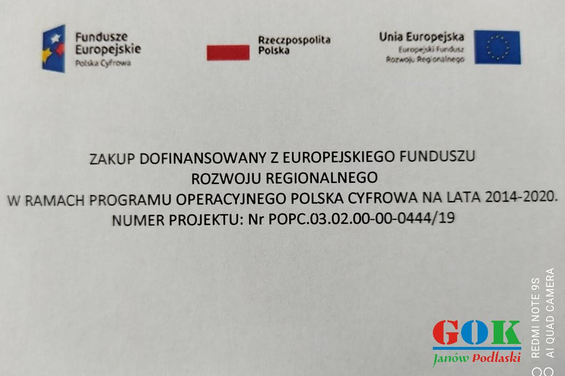 Gminny Ośrodek Kultury w Janowie Podlaskim pozyskał 6 laptopów w związku z realizacją projektu „Sieć na kulturę w podregionie bialskim”. Projekt był współfinansowany ze środków Europejskiego Funduszu Rozwoju Regionalnego w ramach Programu Operacyjnego Polska Cyfrowa (działanie 3.2 „Innowacyjne rozwiązania na rzecz aktywizacji cyfrowej”).