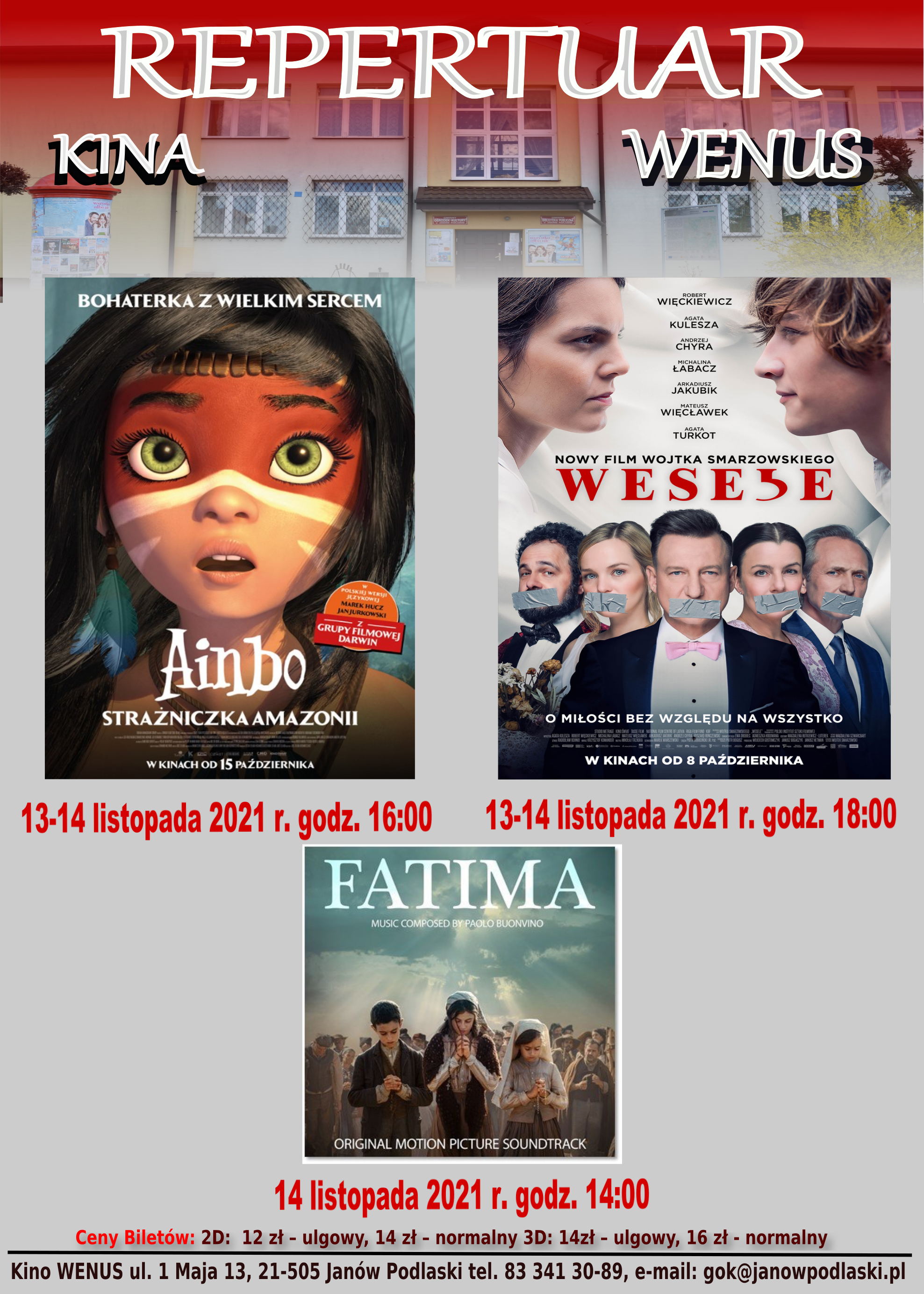 Kino Wenus, działające przy GOK w Janowie Podlaskim zachęca do zapoznania się z repertuarem na miesiąc listopad. Seanse będą odbywać się w dniach 13-14 i 27-28 listopada.