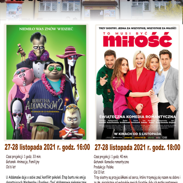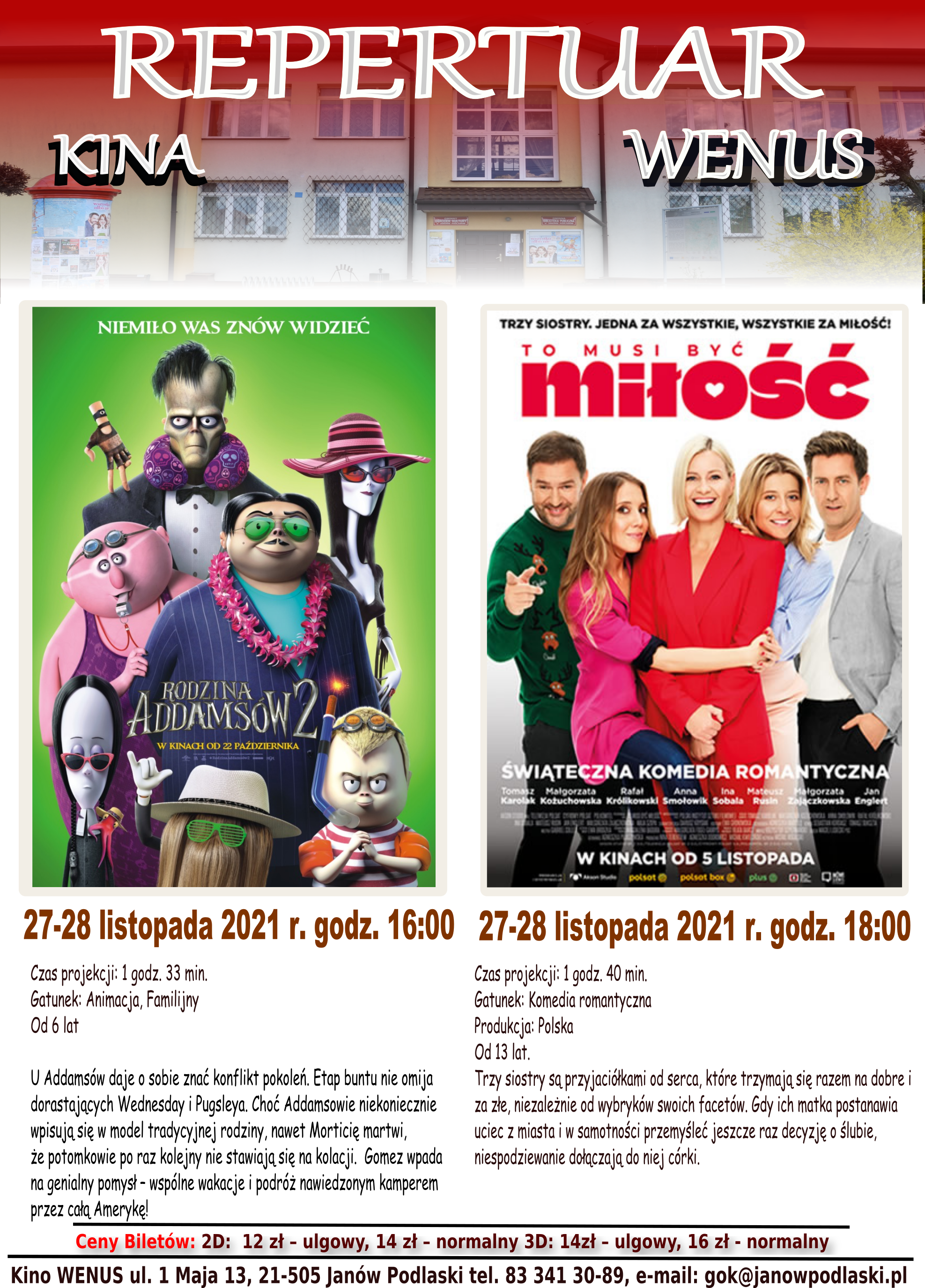 Kino Wenus w Janowie Podlaskim zaprasza na listopadowe seanse. W repertuarze m.in. “Rodzina Adamsów 2” czy “To musi być miłość”.