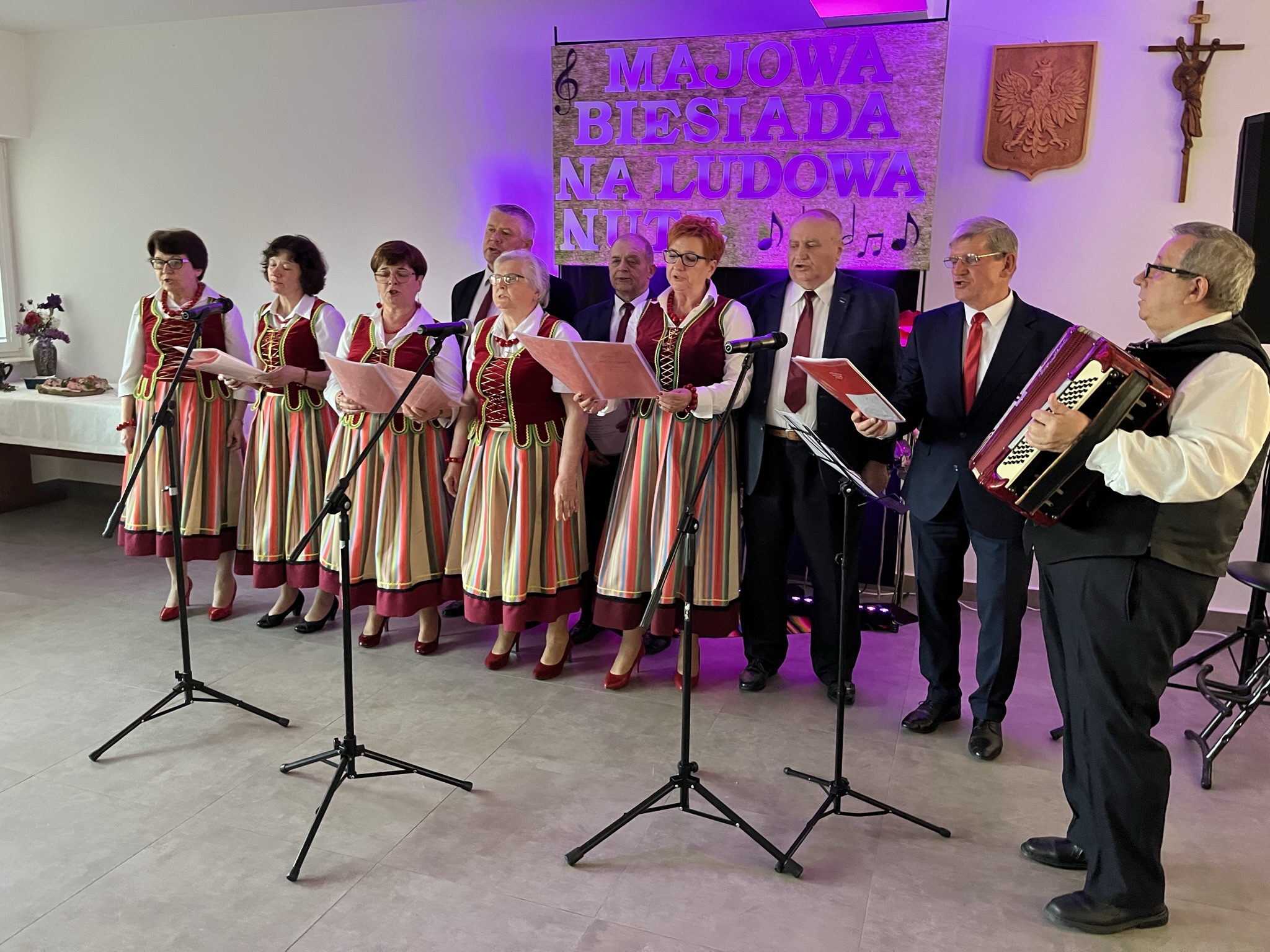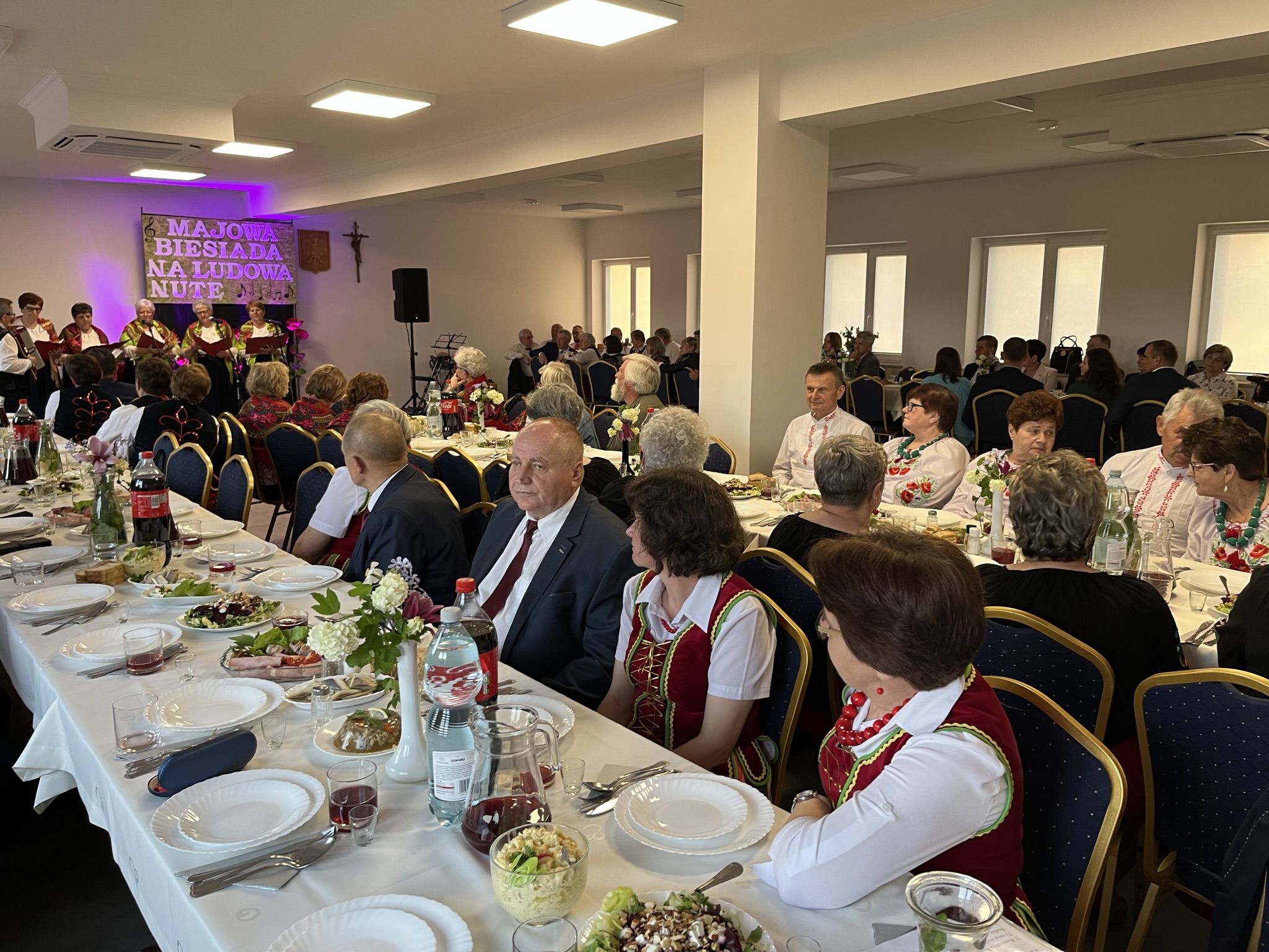 Majowa Biesiada została zorganizowana w duchu polskiego tradycyjnego przyjęcia, pełnego radości, śpiewu, tańca i przepysznych potraw. Stoły uginały się od obfitości, a wspaniałe zespoły śpiewacze dostarczyły wszystkim niezapomnianych występów. Piękne dekoracje i tradycyjne stroje ludowe stworzyły niezwykłą, serdeczną atmosferę, która na długo pozostanie w pamięci uczestników.