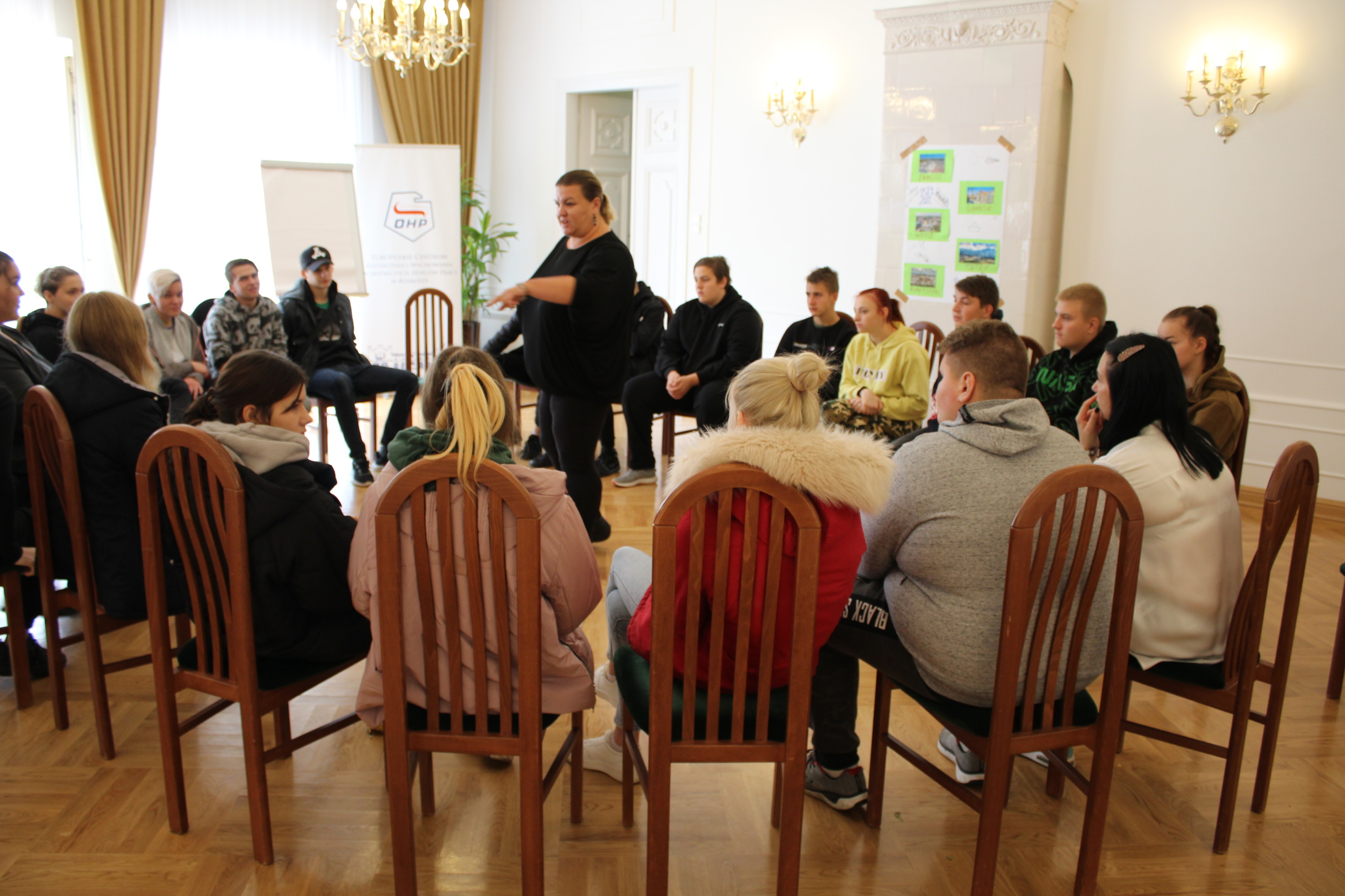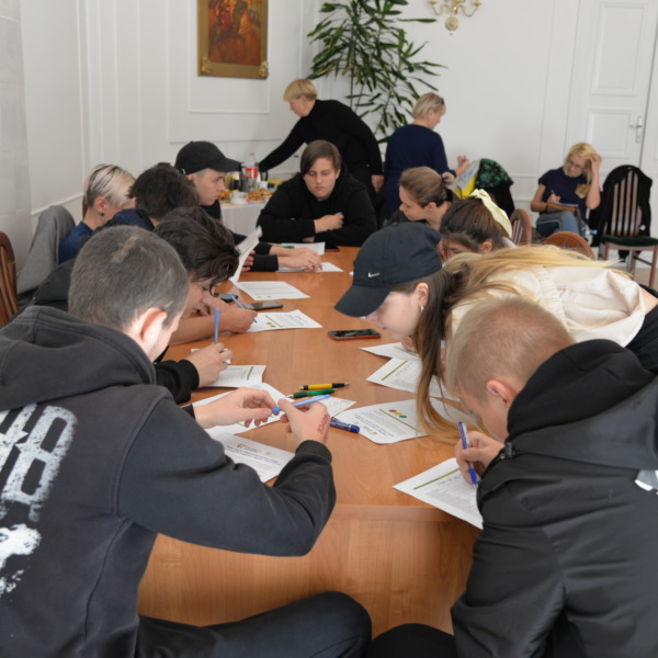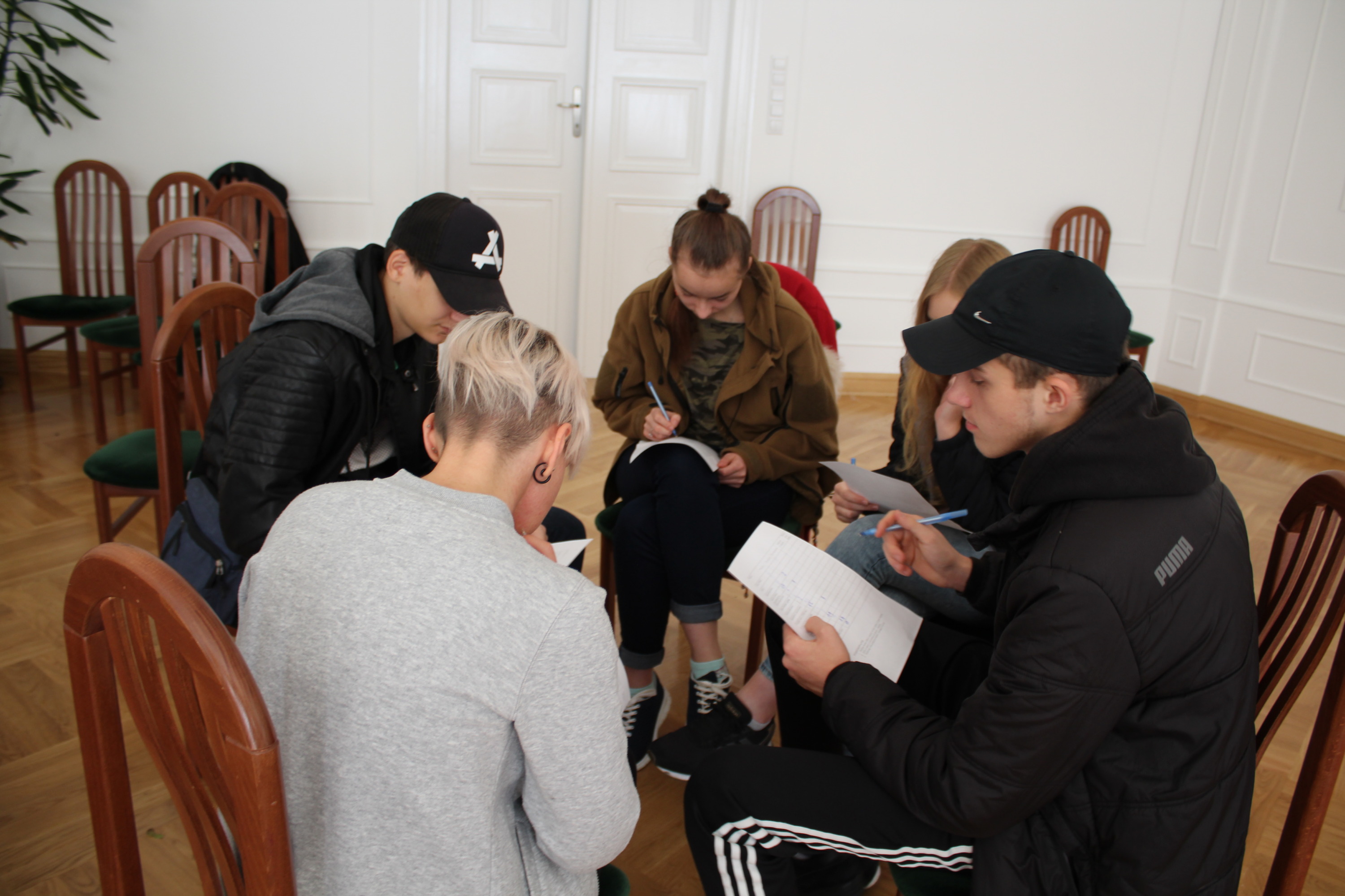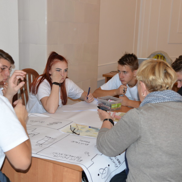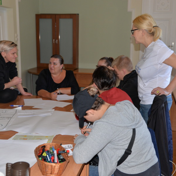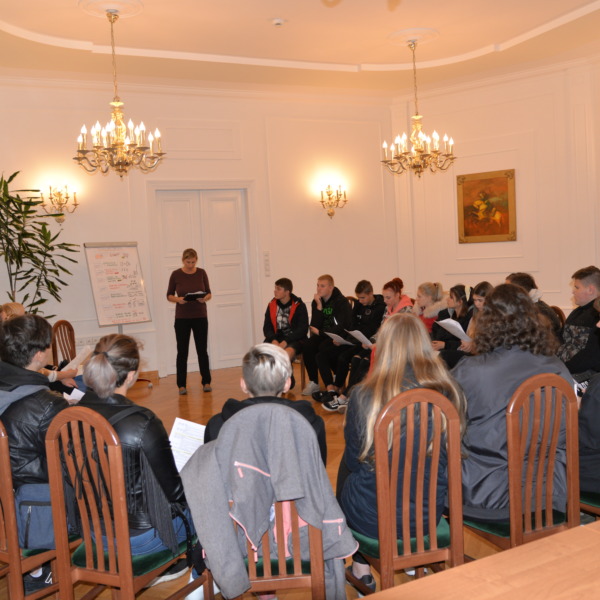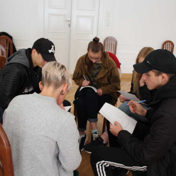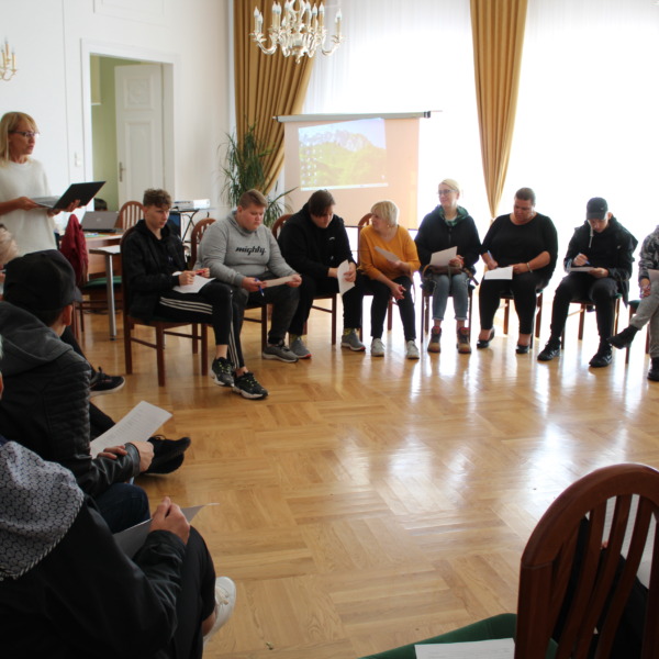 Podczas kolejnych dwóch dni uczestnicy zgłębiali główny temat projektu, którym jest pogłębianie praktycznej wiedzy i poszukiwanie pomysłów na samozatrudnienie oraz na podjęcie działalności w zakresie przedsiębiorczości społecznej. Po zajęciach integracyjnych i wspierających budowanie grupy odbyły się warsztaty z trenerem służące poznawaniu mocnych i słabych stron uczestników, ich predyspozycji i umiejętności. Następnie w tematykę przedsiębiorczości społecznej wprowadził młodzież Pan Karol Szmytko, Prezes Zarządu Spółdzielni Socjalnej Hortus. Gość w bardzo inspirujący sposób opowiedział o początkach funkcjonowania Spółdzielni, wsparciu, jakie oferuje osobom rozpoczynającym działalność społeczną, trudnościach, możliwościach działania spółdzielni socjalnej i planach rozwoju. Następnie uczestnicy omówili przeprowadzoną w czasie spotkań przygotowawczych diagnozę lokalnych potrzeb w wybranych grupach społecznych w Polsce i na Litwie. W tym czasie mieliśmy przyjemność gościć także Panią Agnieszkę Magdziarz-Orłowską, doradcę biznesowego ze Stowarzyszenia na rzecz Integracji Społecznej „Modrzew”, które zajmuje się wspieraniem ekonomii społecznej w powiecie bialskim. Młodzież miała okazję dowiedzieć się wielu cennych informacji o tym, jak działają spółdzielnie socjalne, jakie wsparcie mogą otrzymać osoby, które zamierzają prowadzić działalność w sferze ekonomii społecznej, czym różni się tego typu forma działalności od przedsiębiorstw komercyjnych.