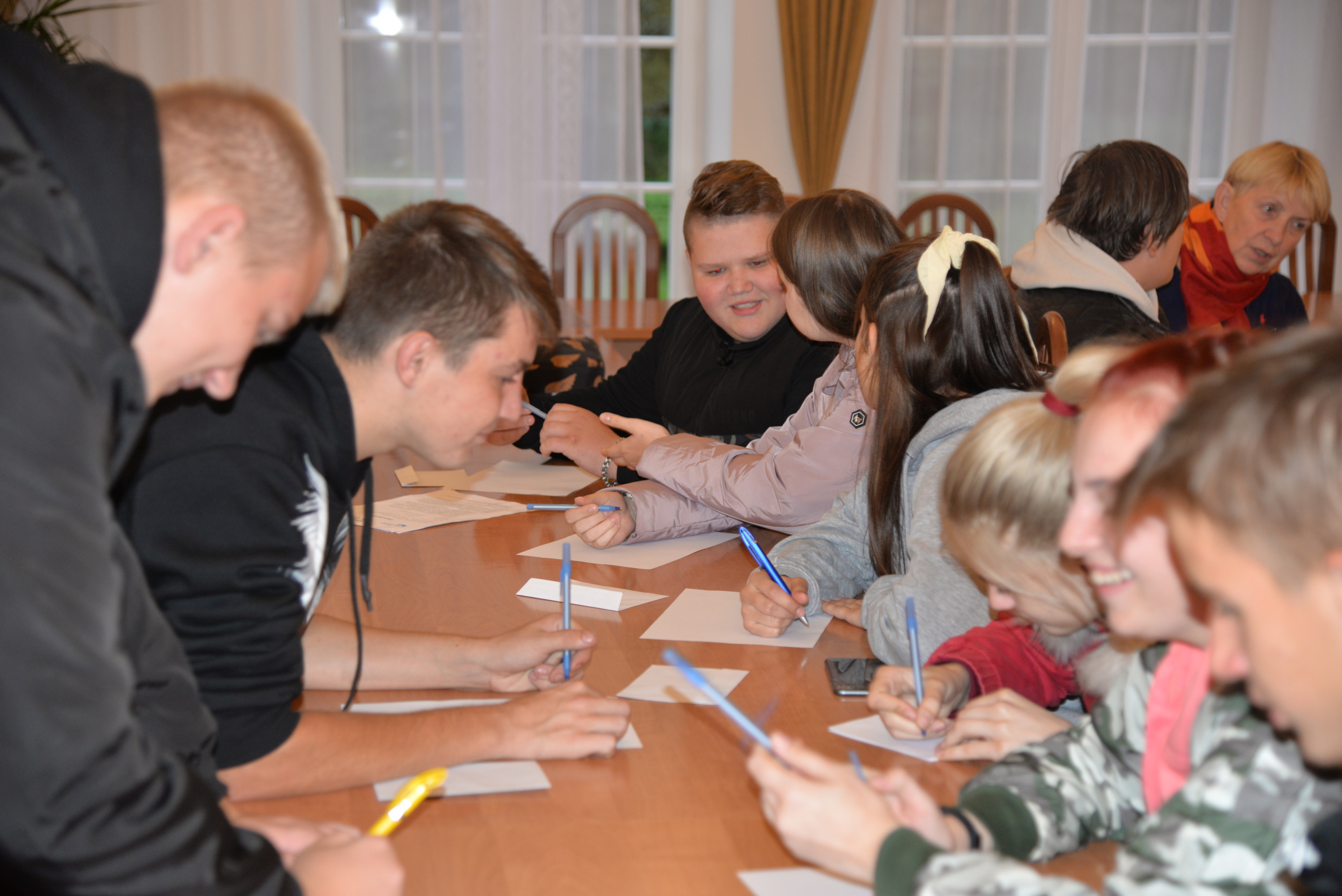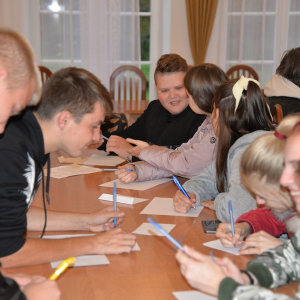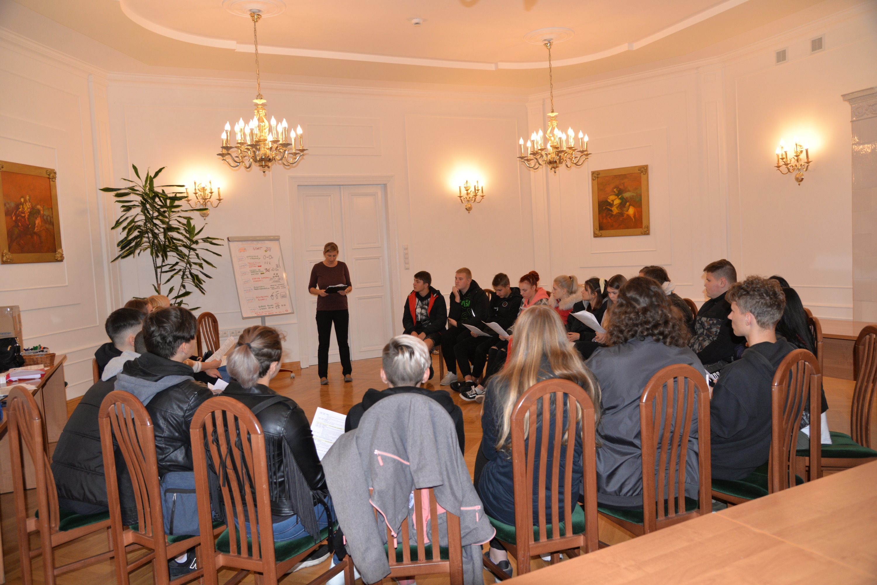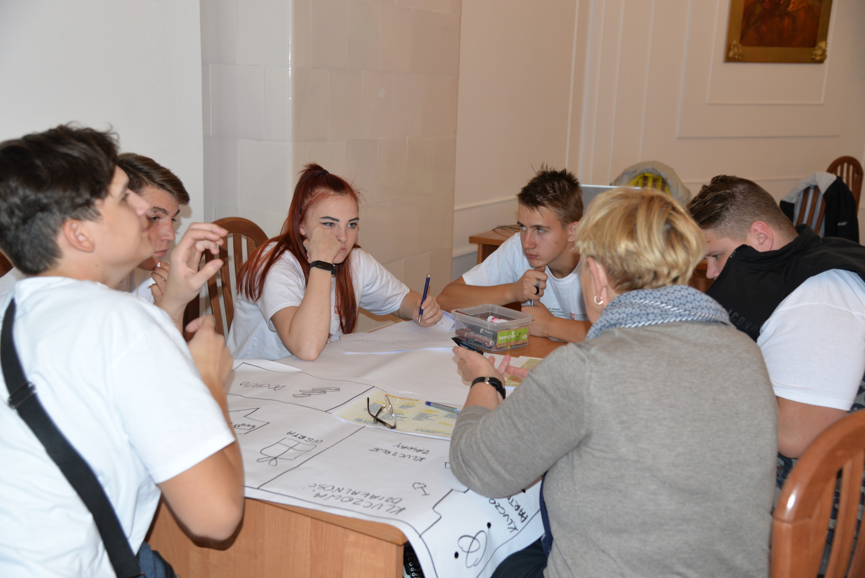 Podczas kolejnych dwóch dni uczestnicy zgłębiali główny temat projektu, którym jest pogłębianie praktycznej wiedzy i poszukiwanie pomysłów na samozatrudnienie oraz na podjęcie działalności w zakresie przedsiębiorczości społecznej. Po zajęciach integracyjnych i wspierających budowanie grupy odbyły się warsztaty z trenerem służące poznawaniu mocnych i słabych stron uczestników, ich predyspozycji i umiejętności. Następnie w tematykę przedsiębiorczości społecznej wprowadził młodzież Pan Karol Szmytko, Prezes Zarządu Spółdzielni Socjalnej Hortus. Gość w bardzo inspirujący sposób opowiedział o początkach funkcjonowania Spółdzielni, wsparciu, jakie oferuje osobom rozpoczynającym działalność społeczną, trudnościach, możliwościach działania spółdzielni socjalnej i planach rozwoju. Następnie uczestnicy omówili przeprowadzoną w czasie spotkań przygotowawczych diagnozę lokalnych potrzeb w wybranych grupach społecznych w Polsce i na Litwie. W tym czasie mieliśmy przyjemność gościć także Panią Agnieszkę Magdziarz-Orłowską, doradcę biznesowego ze Stowarzyszenia na rzecz Integracji Społecznej „Modrzew”, które zajmuje się wspieraniem ekonomii społecznej w powiecie bialskim. Młodzież miała okazję dowiedzieć się wielu cennych informacji o tym, jak działają spółdzielnie socjalne, jakie wsparcie mogą otrzymać osoby, które zamierzają prowadzić działalność w sferze ekonomii społecznej, czym różni się tego typu forma działalności od przedsiębiorstw komercyjnych.