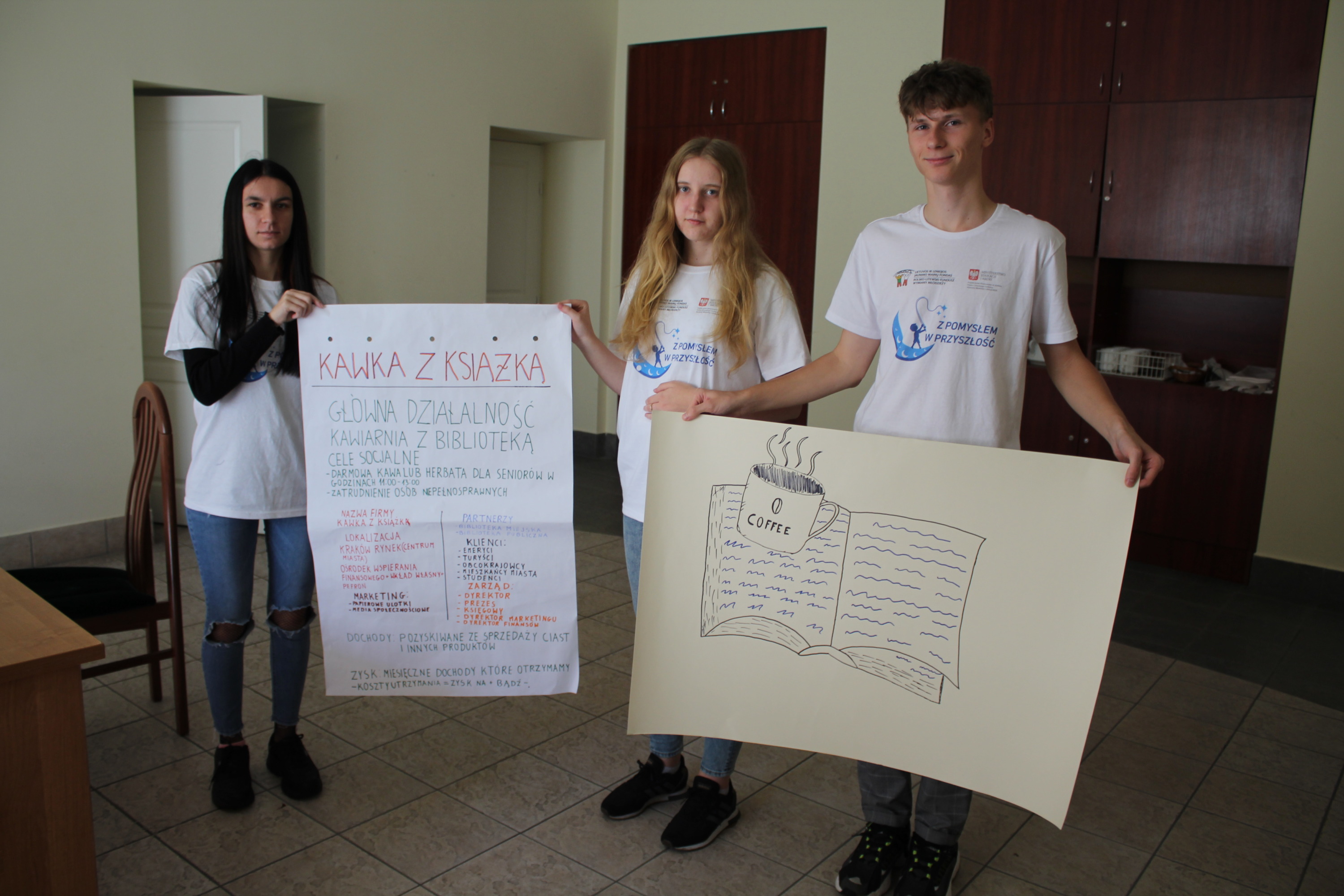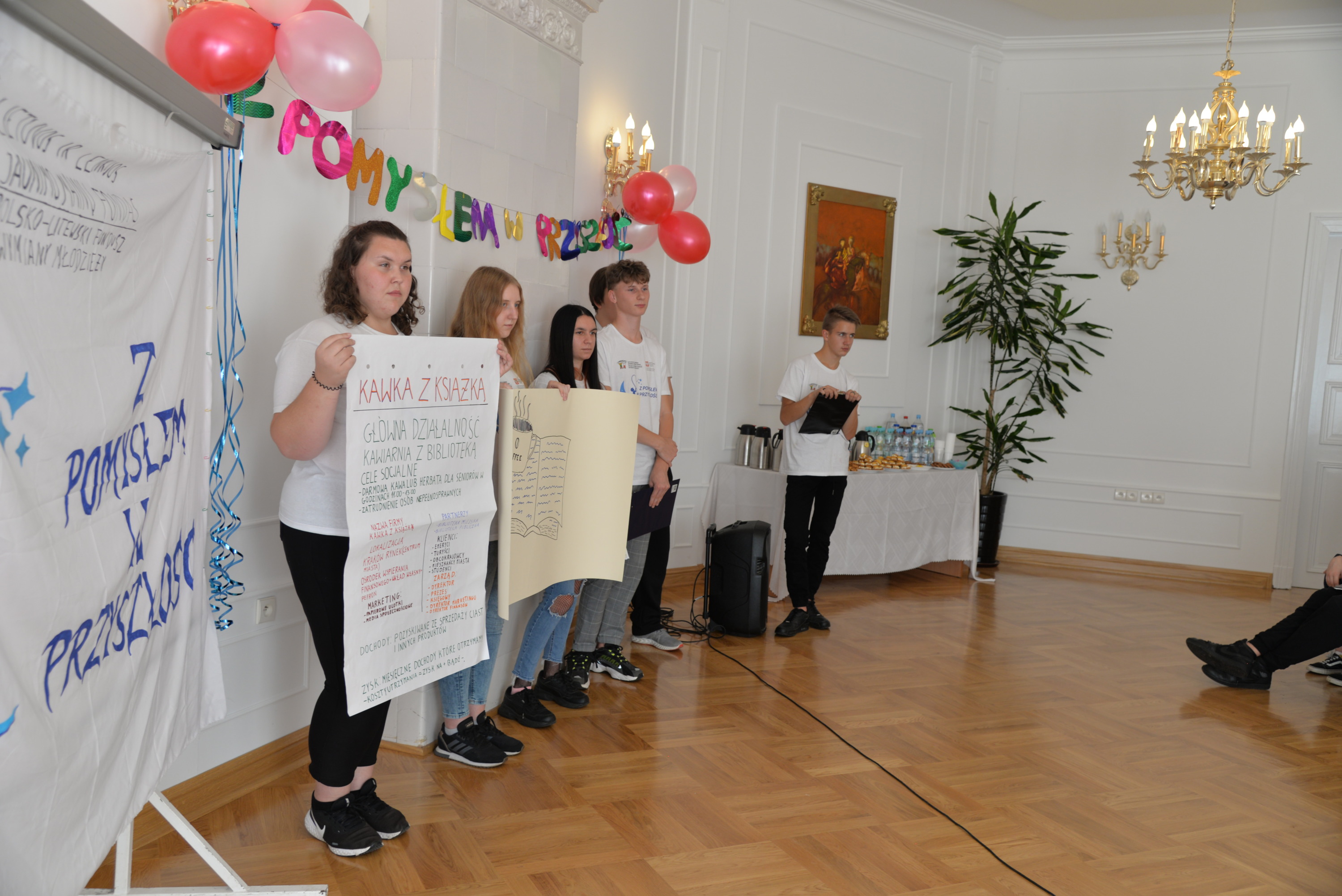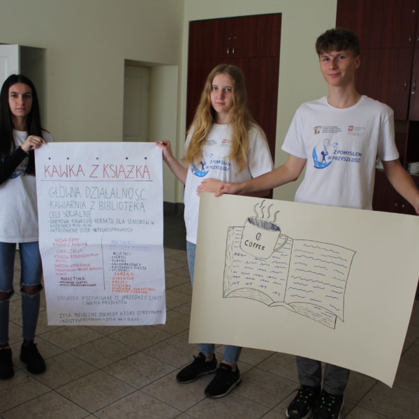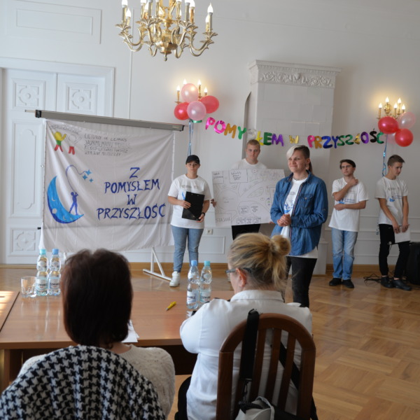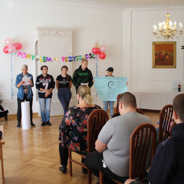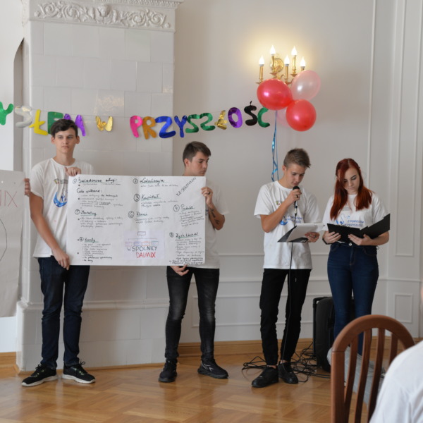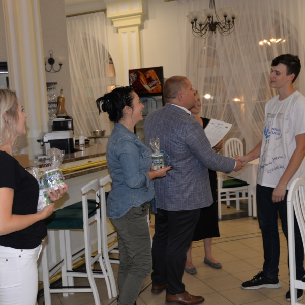 Owocem kilkudniowych działań było wymyślenie, utworzenie i opisanie własnego przedsiębiorstwa społecznego, które młodzież zaprezentowała podczas spotkania finałowego w poniedziałek, 27 września 2021r. Młodzież powitała przybyłych gości oraz ekspertów: Irenę Paszkiewicz z CIS w Białej Podlaskiej, Jerzego Bieleckiego – właściciela prężnie działającej na lokalnym, krajowym i zagranicznym rynku firmy JB Multimedia, Dorotę Sorbian-Przybysz – doradcę zawodowego z Centrum Edukacji i Pracy Młodzieży OHP w Białej Podlaskiej oraz Aleksandrę Astašovą – nauczyciela przedsiębiorczości w organizacji partnerskiej na Litwie. Następnie, po wprowadzeniu i przybliżeniu głównych założeń i działań projektowych uczestnicy rozpoczęli prezentacje swoich projektów spółdzielni socjalnych. Eksperci pozytywnie ocenili wszystkie pomysły, a wśród nich: Kawiarnię “Ju-Ir-Pa-Hu-Ma”, Zagrodę Smaków i Rumaków & Koci Kącik, Kawiarnię “Kawka z Książką” oraz restaurację Daimix, świadczącą usługi dostawy zamówień dronem.