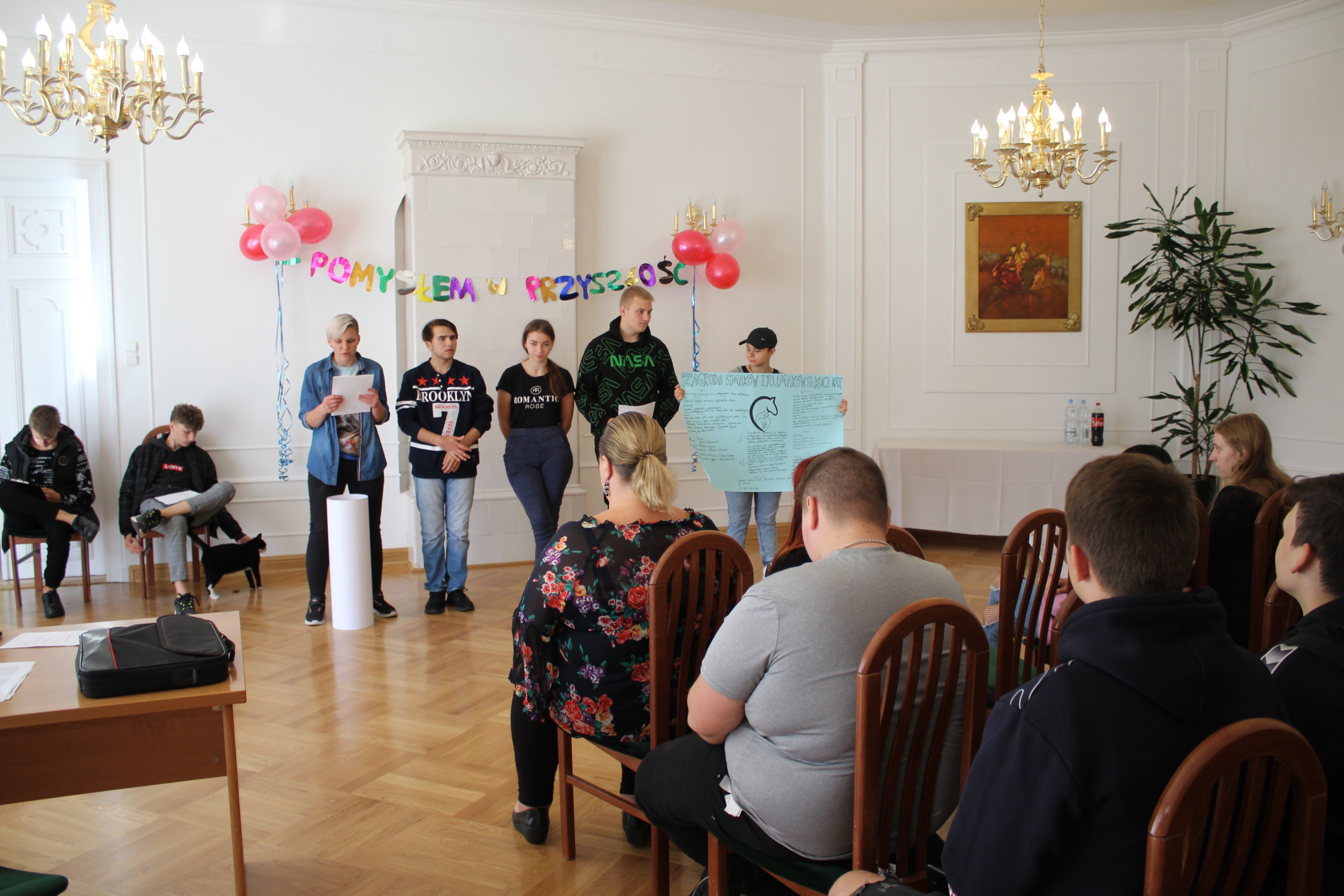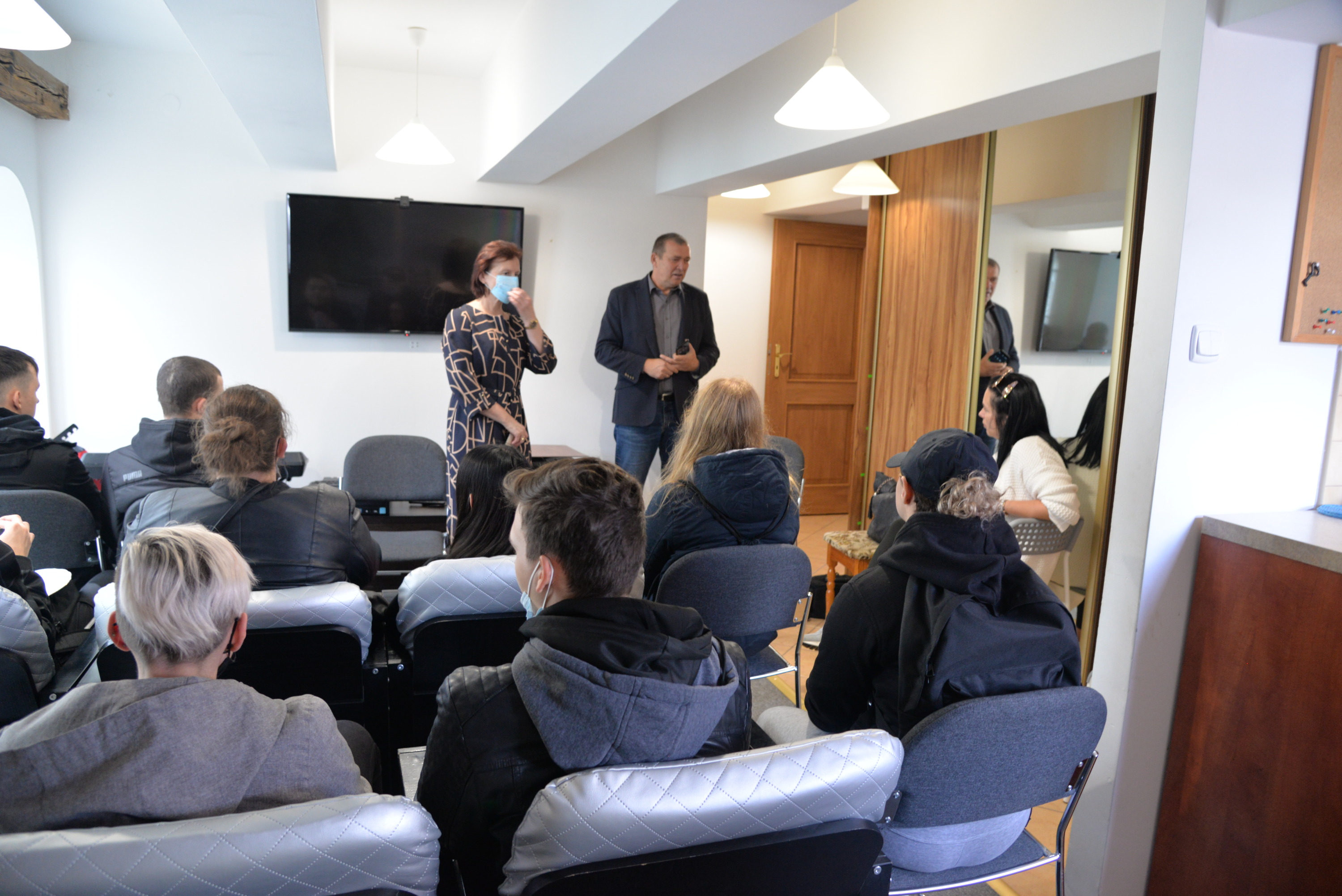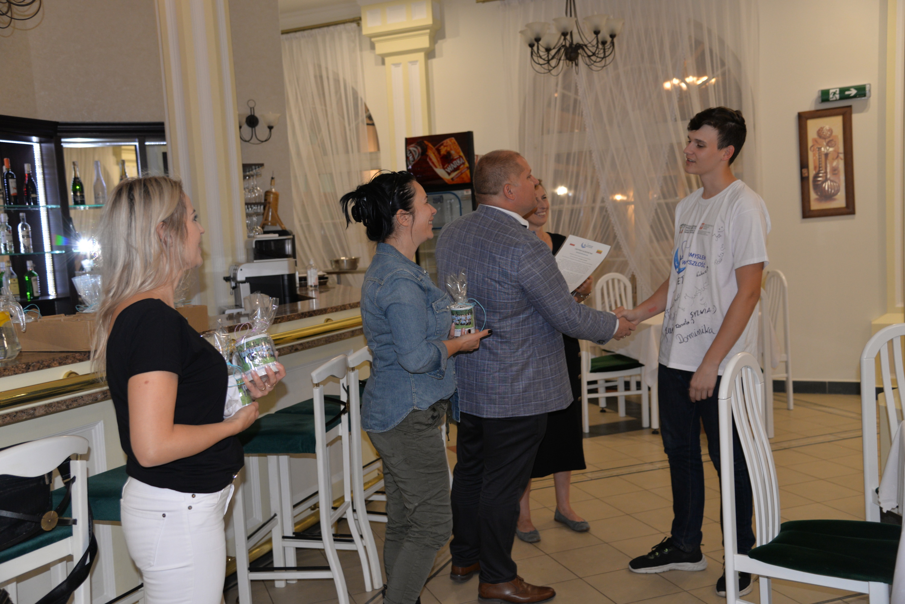 Owocem kilkudniowych działań było wymyślenie, utworzenie i opisanie własnego przedsiębiorstwa społecznego, które młodzież zaprezentowała podczas spotkania finałowego w poniedziałek, 27 września 2021r. Młodzież powitała przybyłych gości oraz ekspertów: Irenę Paszkiewicz z CIS w Białej Podlaskiej, Jerzego Bieleckiego – właściciela prężnie działającej na lokalnym, krajowym i zagranicznym rynku firmy JB Multimedia, Dorotę Sorbian-Przybysz – doradcę zawodowego z Centrum Edukacji i Pracy Młodzieży OHP w Białej Podlaskiej oraz Aleksandrę Astašovą – nauczyciela przedsiębiorczości w organizacji partnerskiej na Litwie. Następnie, po wprowadzeniu i przybliżeniu głównych założeń i działań projektowych uczestnicy rozpoczęli prezentacje swoich projektów spółdzielni socjalnych. Eksperci pozytywnie ocenili wszystkie pomysły, a wśród nich: Kawiarnię “Ju-Ir-Pa-Hu-Ma”, Zagrodę Smaków i Rumaków & Koci Kącik, Kawiarnię “Kawka z Książką” oraz restaurację Daimix, świadczącą usługi dostawy zamówień dronem.