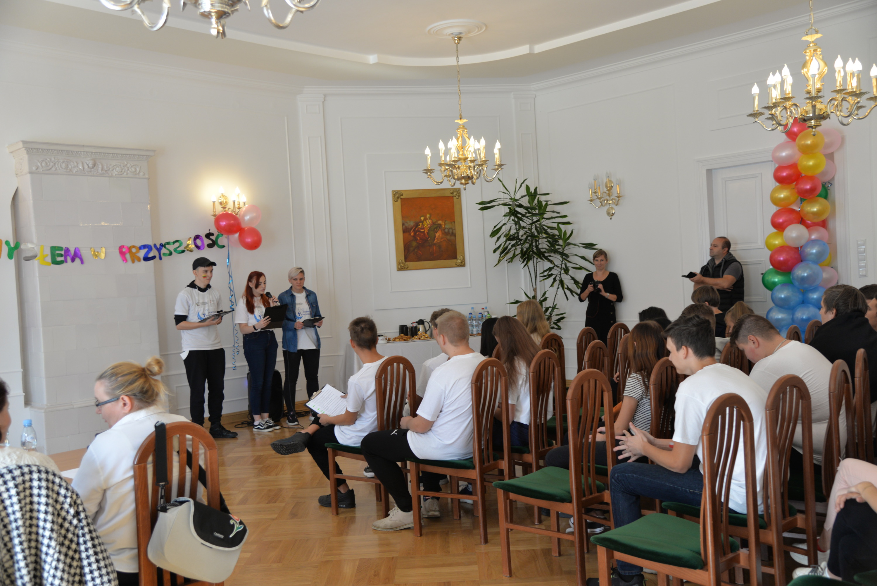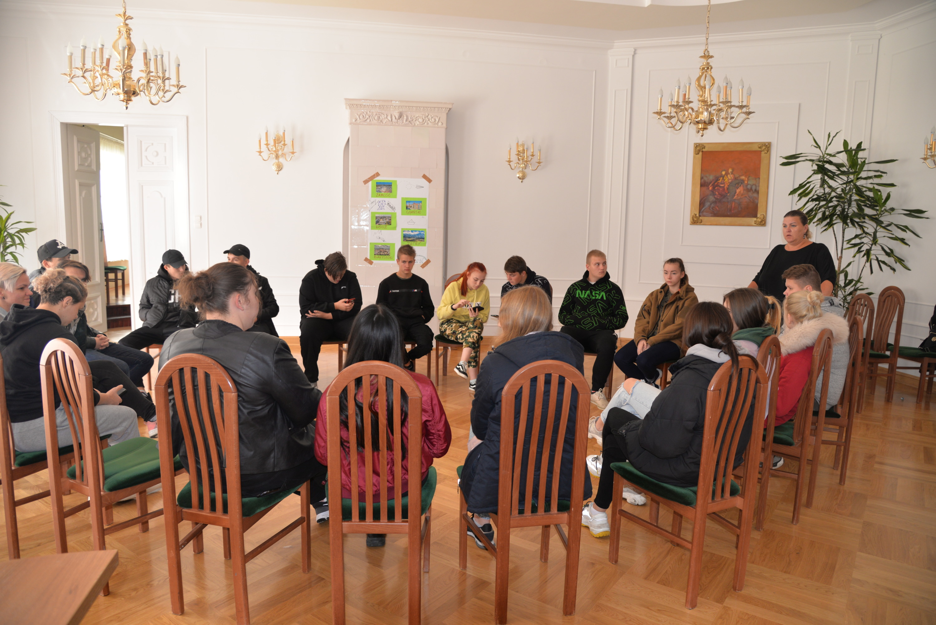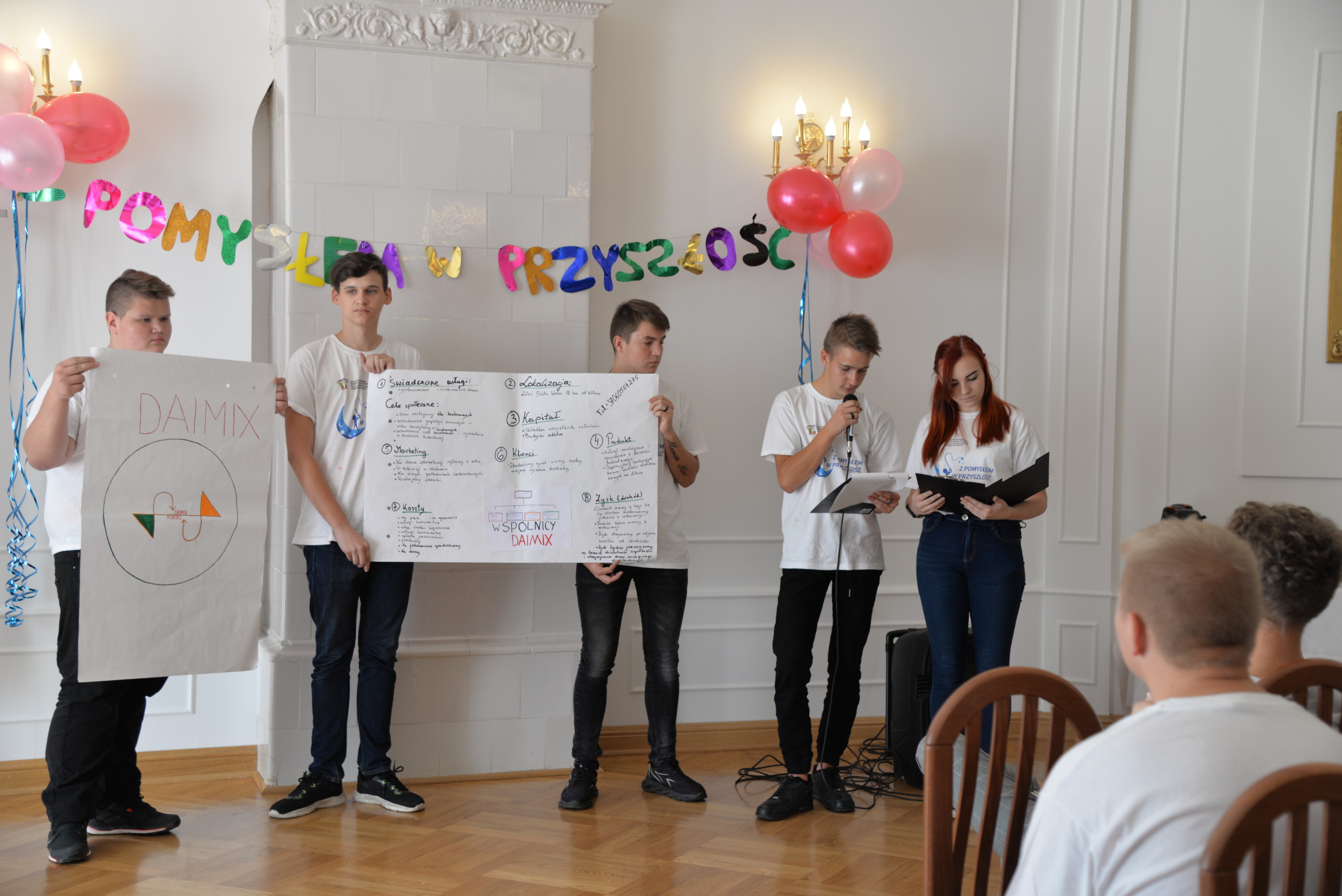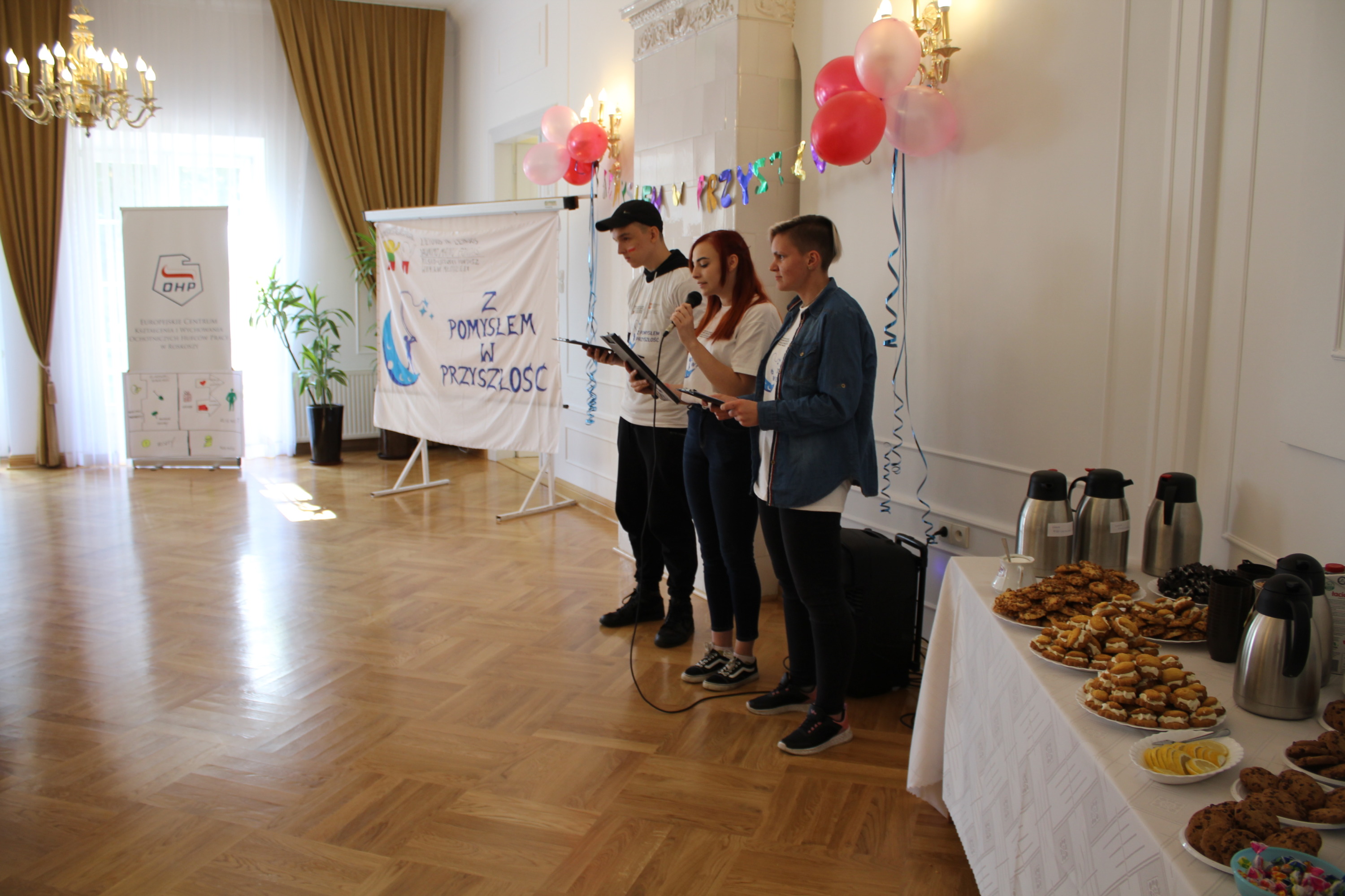 Owocem kilkudniowych działań było wymyślenie, utworzenie i opisanie własnego przedsiębiorstwa społecznego, które młodzież zaprezentowała podczas spotkania finałowego w poniedziałek, 27 września 2021r. Młodzież powitała przybyłych gości oraz ekspertów: Irenę Paszkiewicz z CIS w Białej Podlaskiej, Jerzego Bieleckiego – właściciela prężnie działającej na lokalnym, krajowym i zagranicznym rynku firmy JB Multimedia, Dorotę Sorbian-Przybysz – doradcę zawodowego z Centrum Edukacji i Pracy Młodzieży OHP w Białej Podlaskiej oraz Aleksandrę Astašovą – nauczyciela przedsiębiorczości w organizacji partnerskiej na Litwie. Następnie, po wprowadzeniu i przybliżeniu głównych założeń i działań projektowych uczestnicy rozpoczęli prezentacje swoich projektów spółdzielni socjalnych. Eksperci pozytywnie ocenili wszystkie pomysły, a wśród nich: Kawiarnię “Ju-Ir-Pa-Hu-Ma”, Zagrodę Smaków i Rumaków & Koci Kącik, Kawiarnię “Kawka z Książką” oraz restaurację Daimix, świadczącą usługi dostawy zamówień dronem.