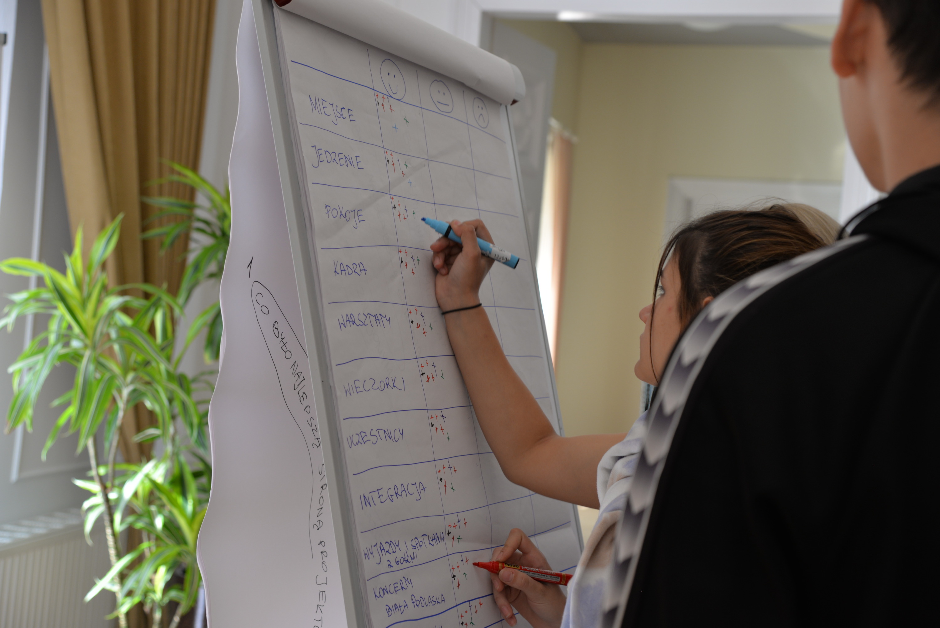 Po powrocie do Roskoszy młodzi ludzie z zapałem wzięli się do pracy nad własnymi pomysłami na przedsiębiorstwa społeczne, wykazując się przy tym ogromną kreatywnością i chęcią pomocy najbardziej potrzebującym. Każdy z uczestników miał bardzo ciekawy pomysł na własne przedsiębiorstwo społeczne, po zapoznaniu się ze schematem modelu biznesowego i wysłuchaniu wskazówek jak opracować swój projekt przedsiębiorstwa, wyłonione zostały grupy pięcioosobowe, w których przyszli członkowie spółdzielni socjalnych intensywnie pracowali nad własnym pomysłem biznesowym. Zanim uczestnicy mieli okazję zaprezentować i omówić swoje przyszłe przedsiębiorstwa, przygotowali swoje wystąpienia, prezentację projektu i dotychczasowych działań, dekorację, poczęstunek i galerię zdjęć.