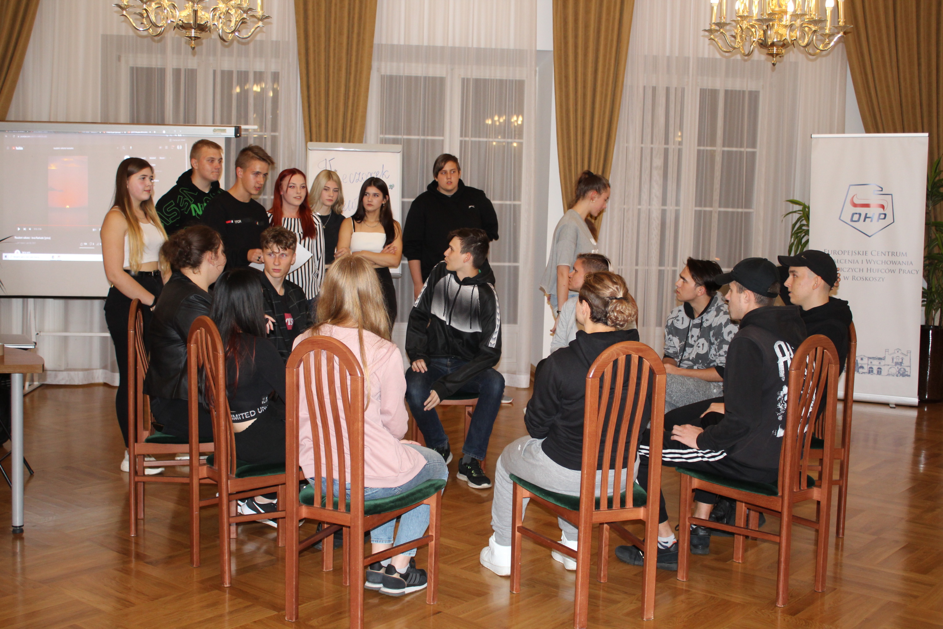 W dniu przyjazdu do ECKiW OHP w Roskoszy, 22 września 2021r. uczestnicy zostali przywitani przez Dyrektora i kadrę Centrum, zapoznali się z terenem ECKiW, poznali historię zespołu dworsko-parkowego w Roskoszy, przeanalizowali szczegółowo program i regulamin wymiany oraz zasady bezpieczeństwa. Wieczorem młodzież uczestniczyła w różnych grach i zabawach ewaluacji wstępnej, zapoznawczych i integracyjnych.