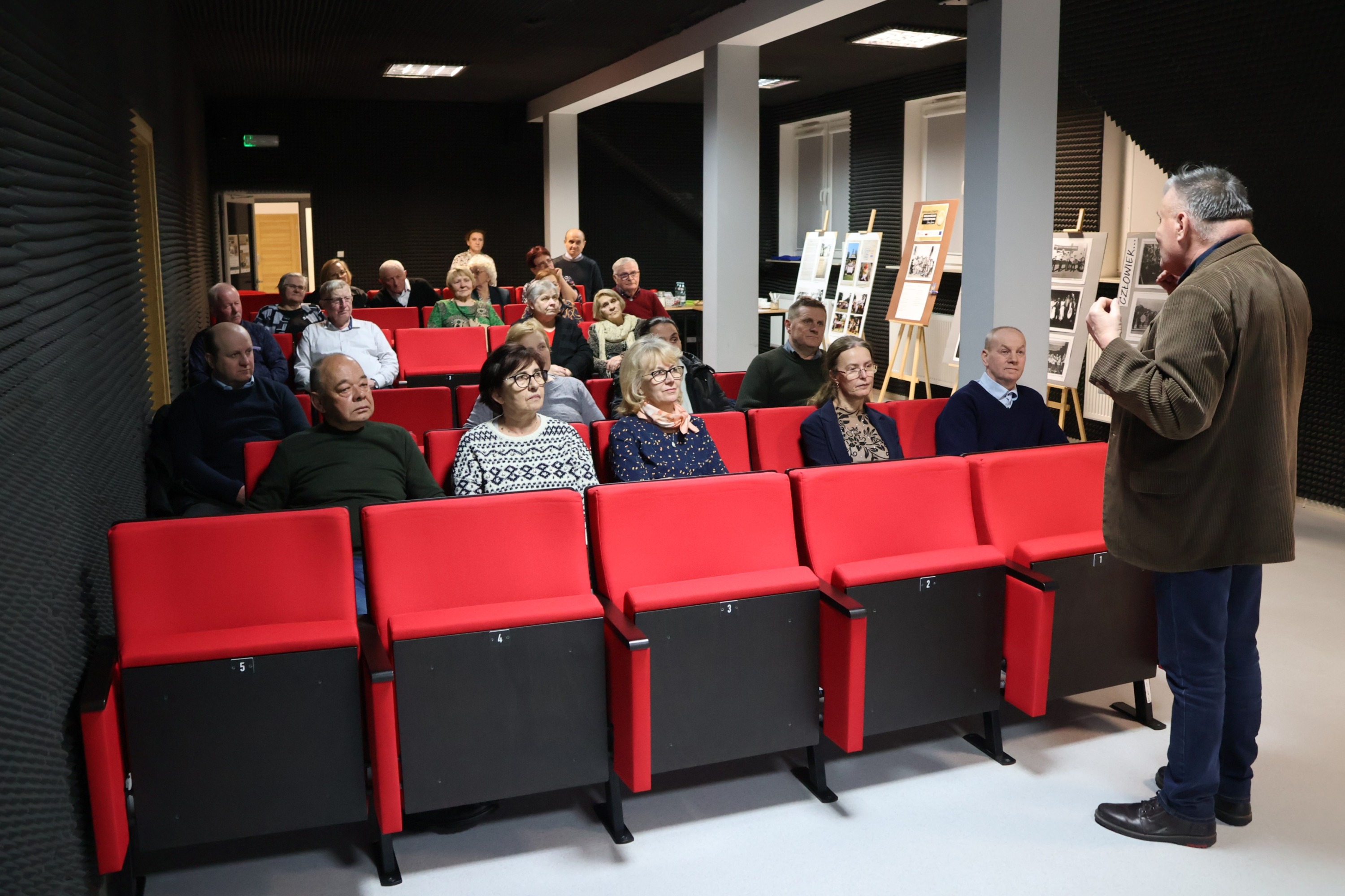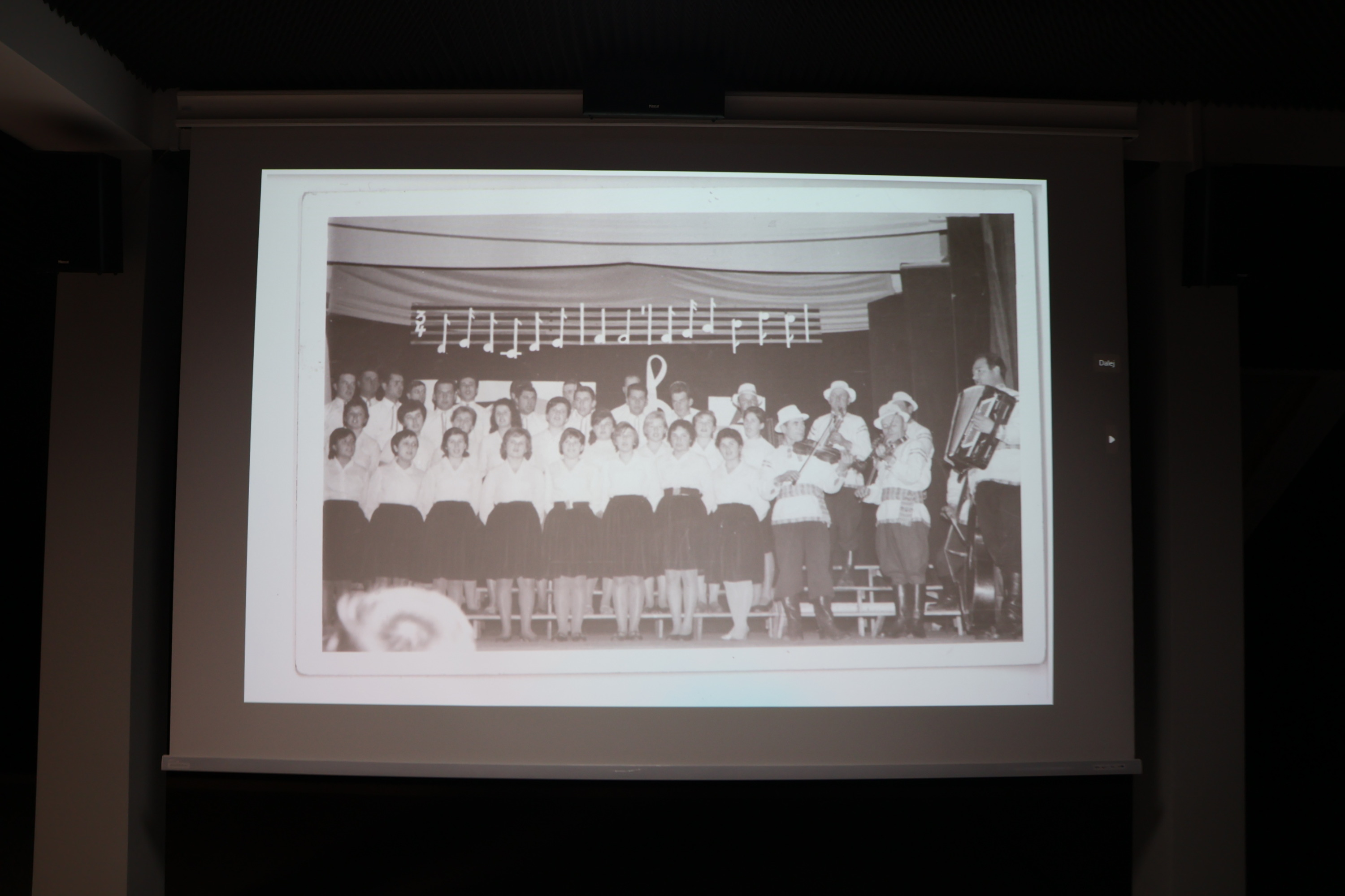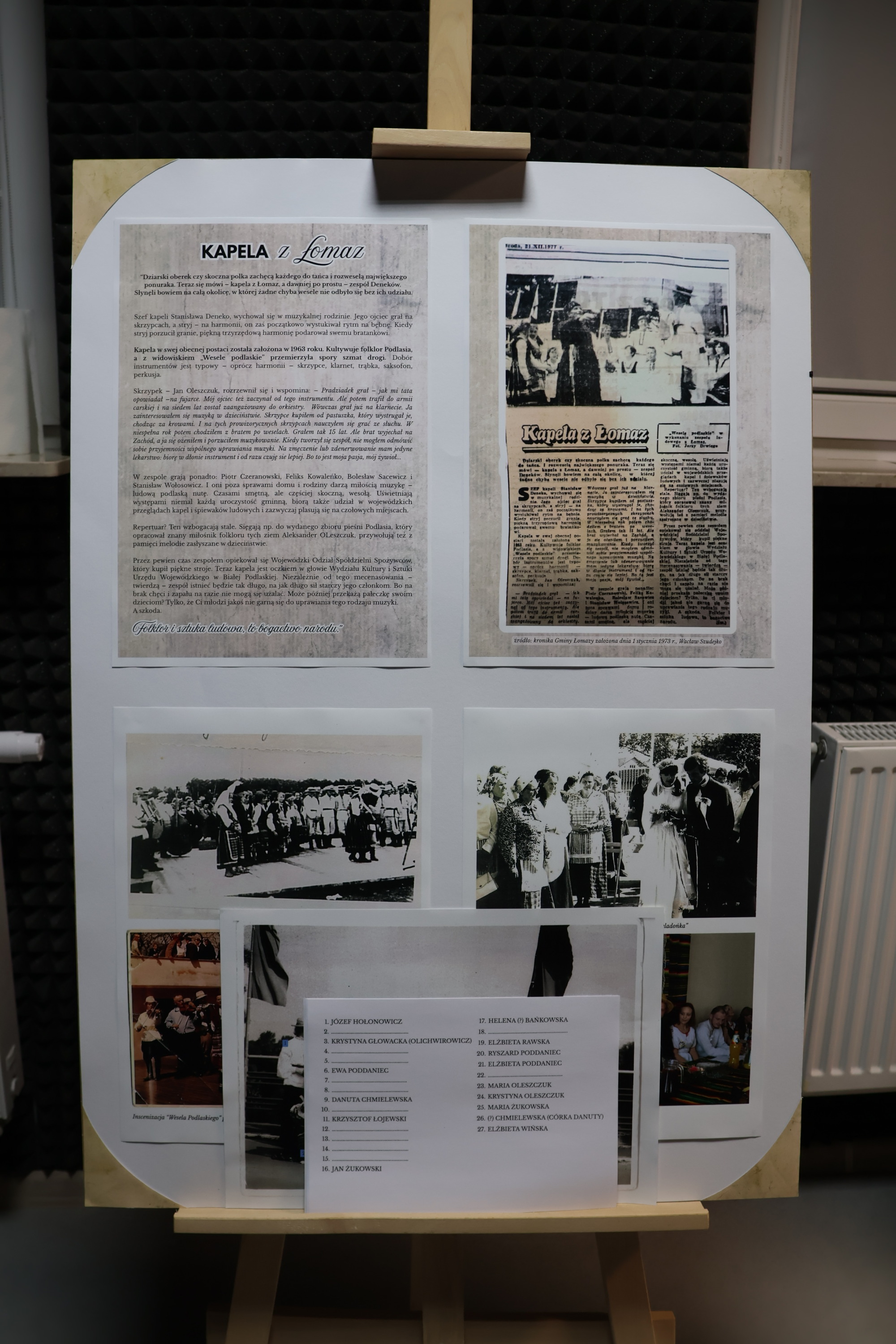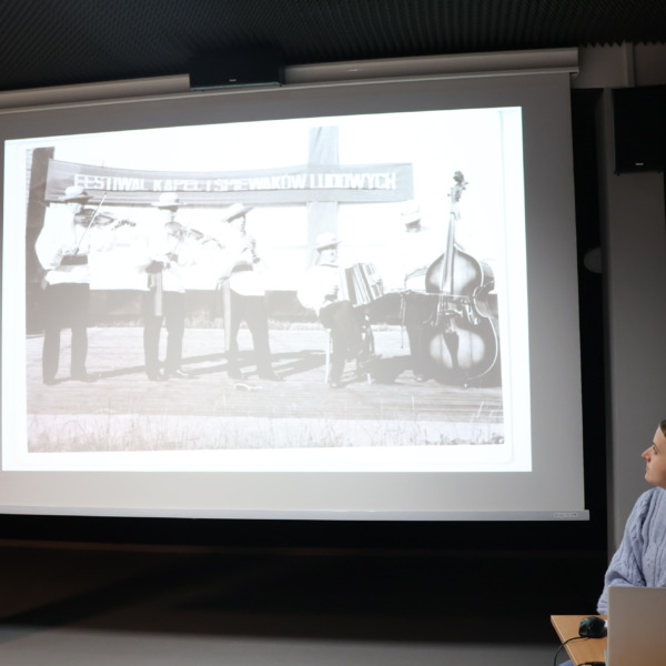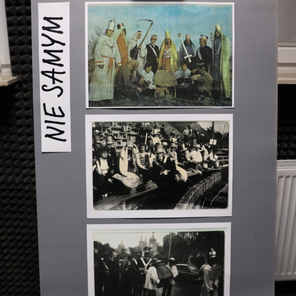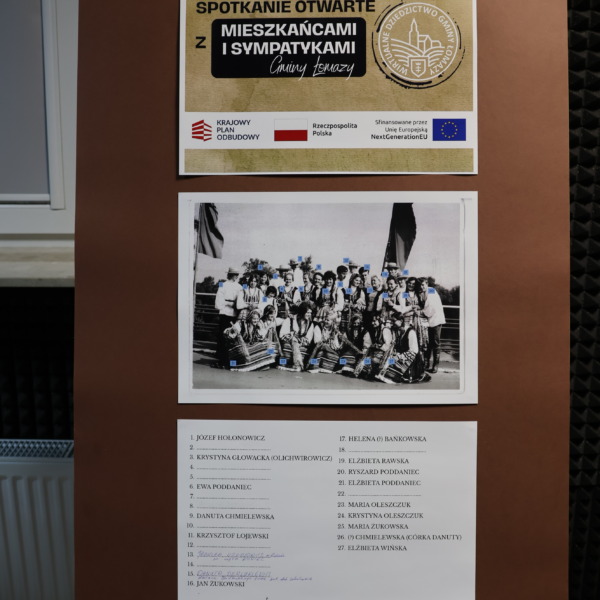 Wieczorna pora sprzyjała również przywoływaniu wspomnień oraz rozmowom i refleksjom na temat bogactwa lokalnego dziedzictwa kulturowego. Na archiwalnych fotografiach prezentowano kadry przedstawiające mieszkańców gminy Łomazy zaangażowanych w rozwój życia artystycznego.