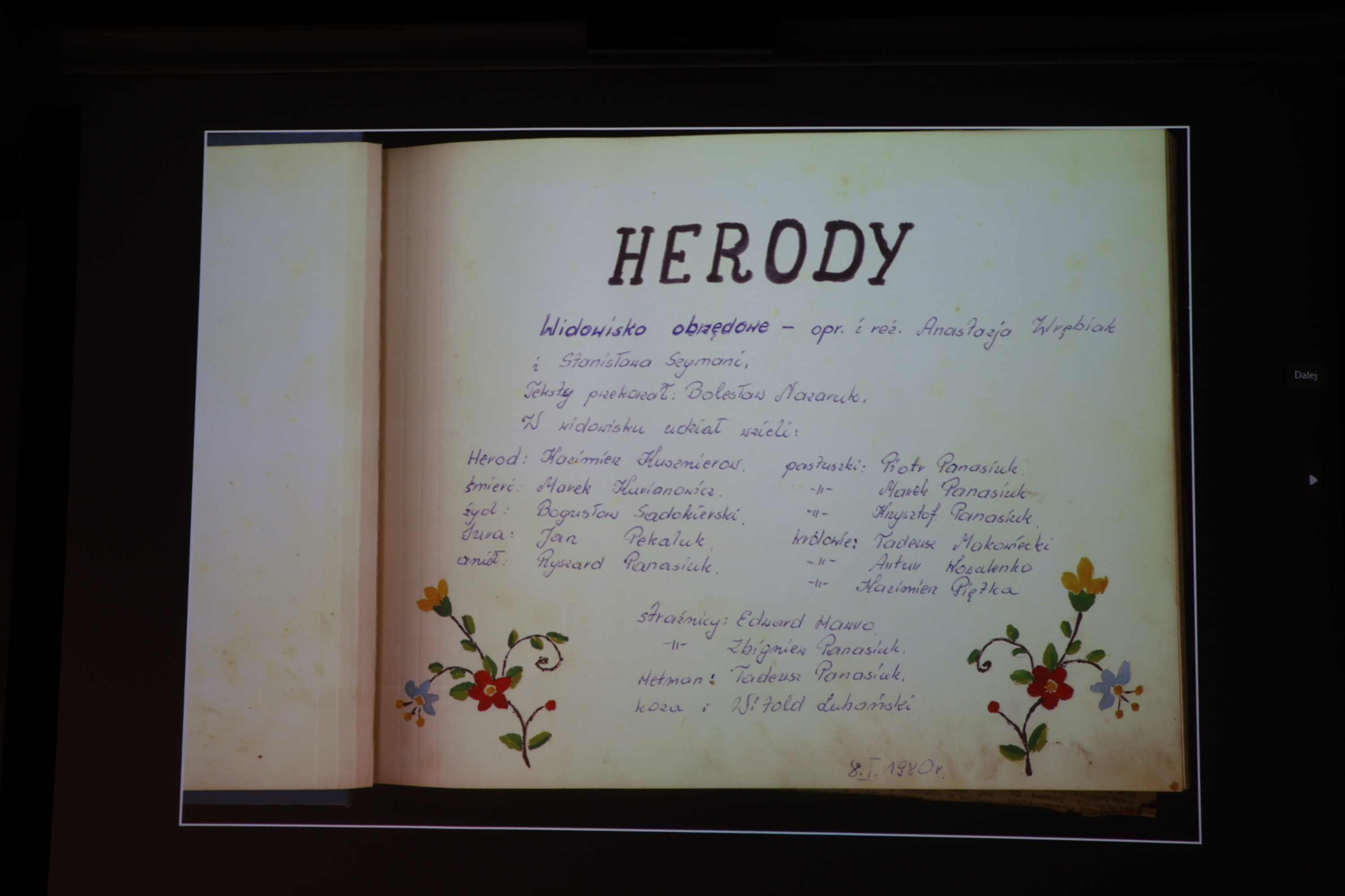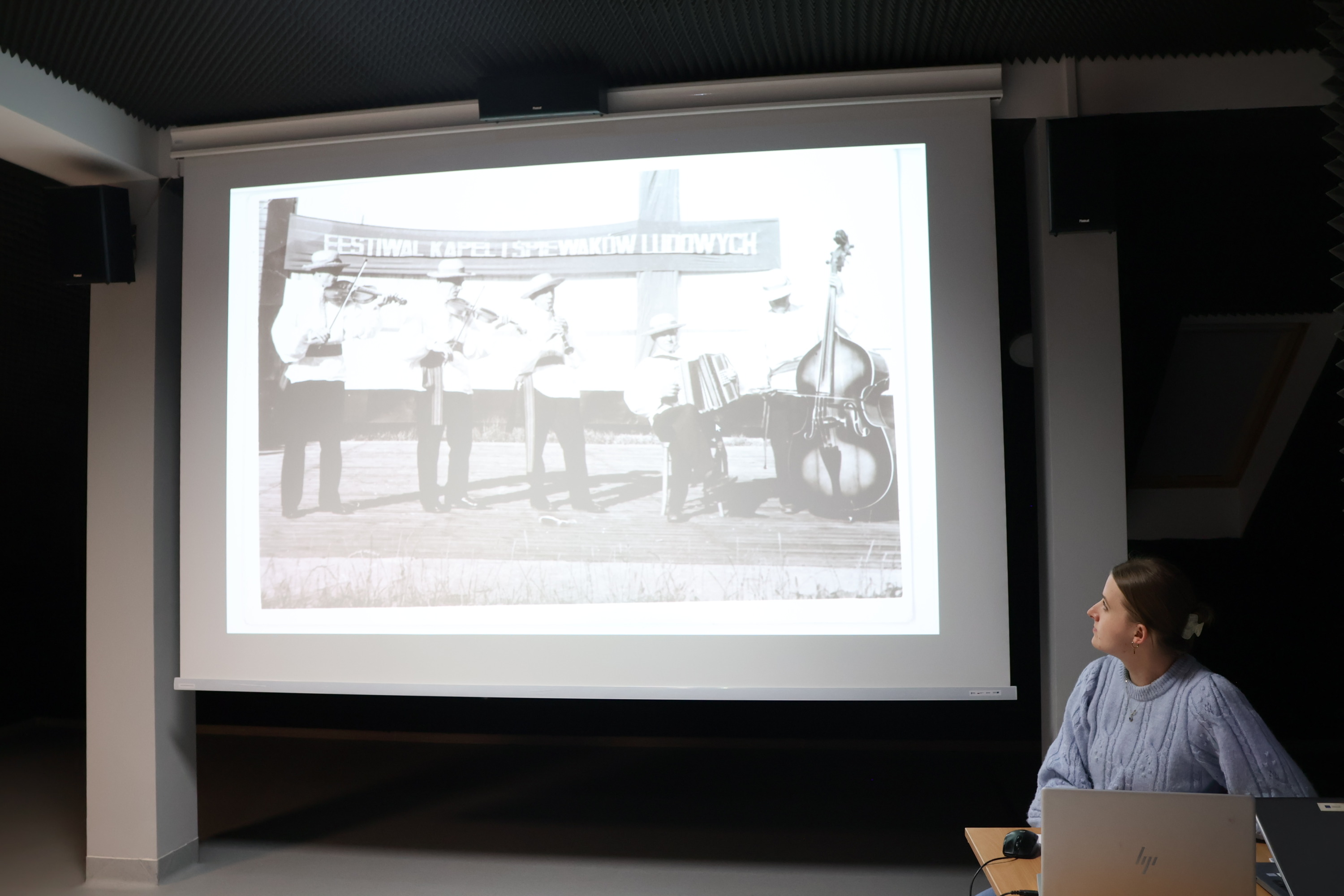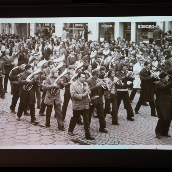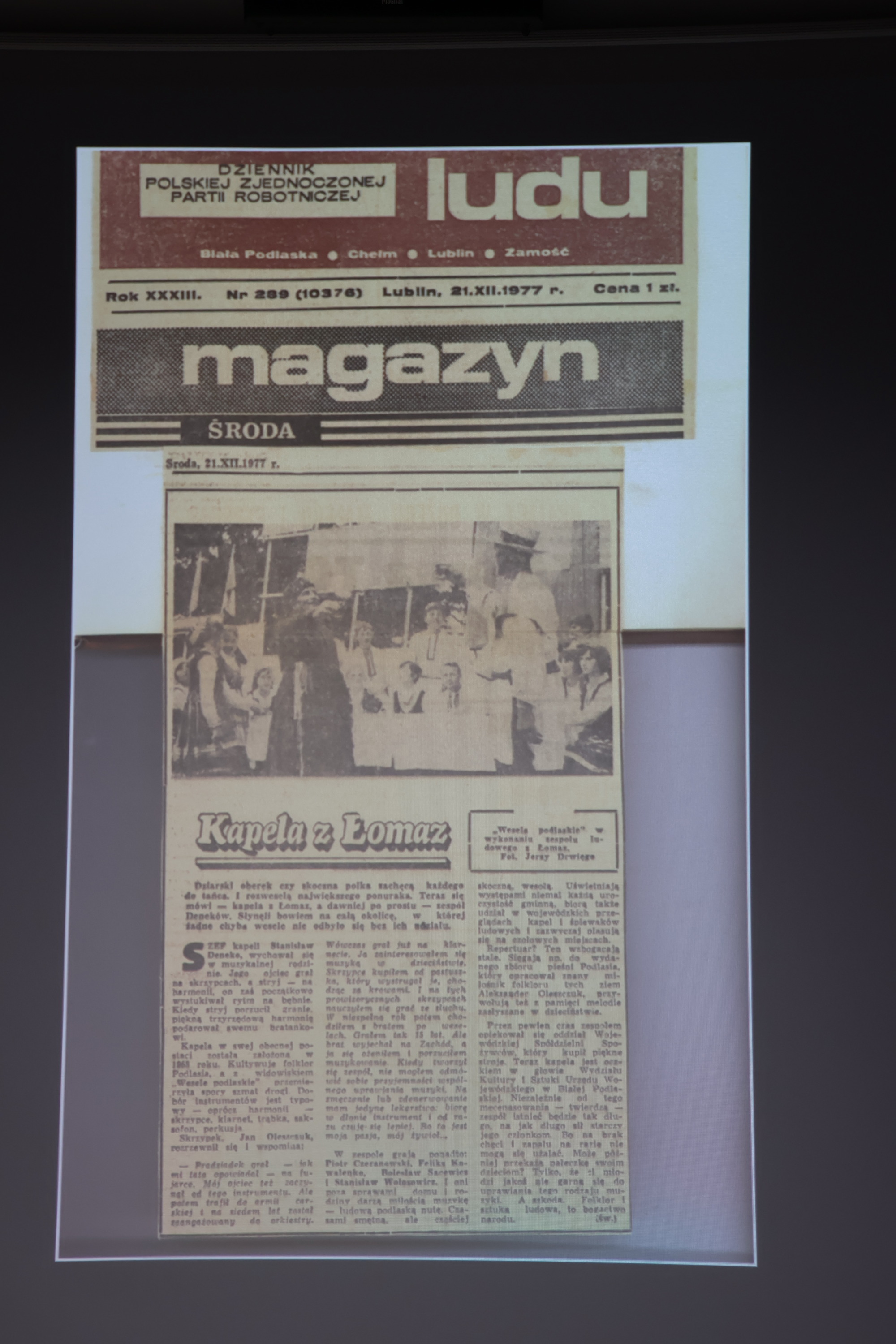 Wieczorna pora sprzyjała również przywoływaniu wspomnień oraz rozmowom i refleksjom na temat bogactwa lokalnego dziedzictwa kulturowego. Na archiwalnych fotografiach prezentowano kadry przedstawiające mieszkańców gminy Łomazy zaangażowanych w rozwój życia artystycznego.