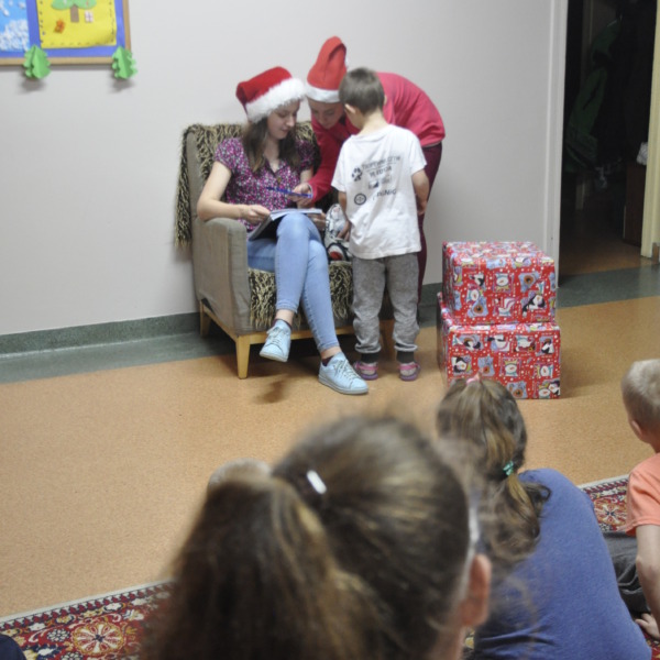 Podczas mikołajkowej wizyty koło teatralne “W decHe” wystawiło dla dzieci przedstawienie “Trzy świnki”. Podczas spotkania dzieci wysłuchały kilku piosenek oraz uczestniczyły w przygotowanych zabawach. Mikołaj miał dla wszystkich dzieci prezenty, a dzieci upiekły dla Mikołaja pyszną szarlotkę.