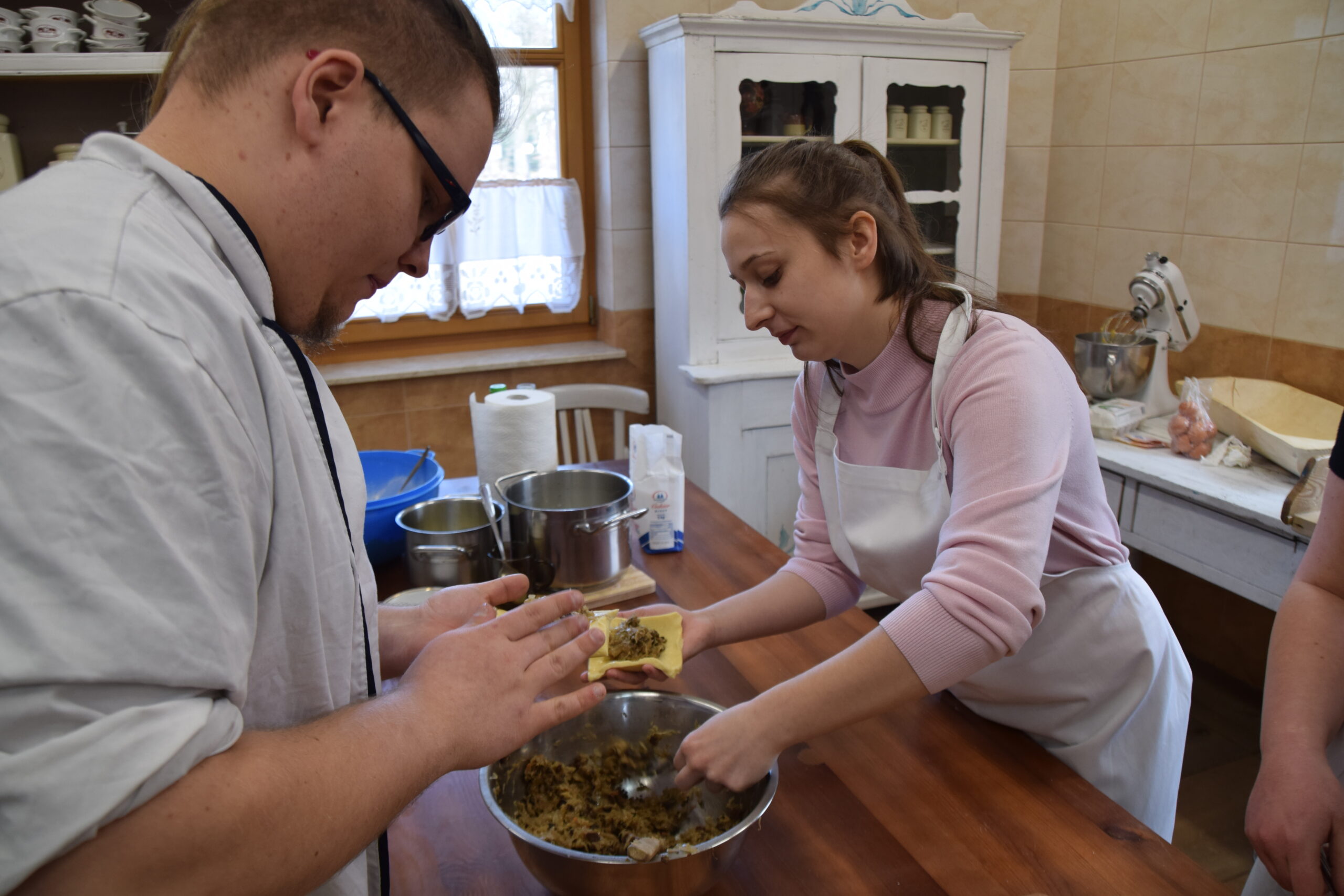 Podczas kolejnych spotkań uczestnicy projektu zgłębiali tradycje kulinarne swojej małej ojczyzny, biorąc udział w warsztatach praktycznych na terenie wioski ginących zawodów w ECKiW OHP w Roskoszy. Młodzież przygotowywała wypieki związane z tradycjami obrzędowymi i świętami Wielkanocnymi: kołacze, kulebiaki, zdobione ciasto weselne zwane korowajem, podlaski sękacz i kolorowe mazurki.