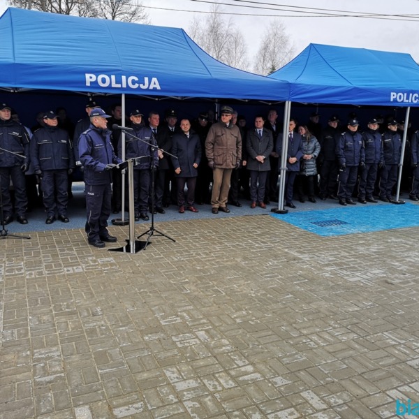 Przybyłych gości powitał p.o. Komendanta Miejskiego Policji w Białej Podlaskiej insp. Wojciech Czapla. Szef bialskich stróżów prawa w swoim wystąpieniu podziękował wszystkim tym, którzy przyczynili się do powstania tego obiektu. Komendant słowa podziękowania skierował w szczególności do Wójta Gminy Sławatycze, który przekazał działkę pod budowę nowego komisariatu.