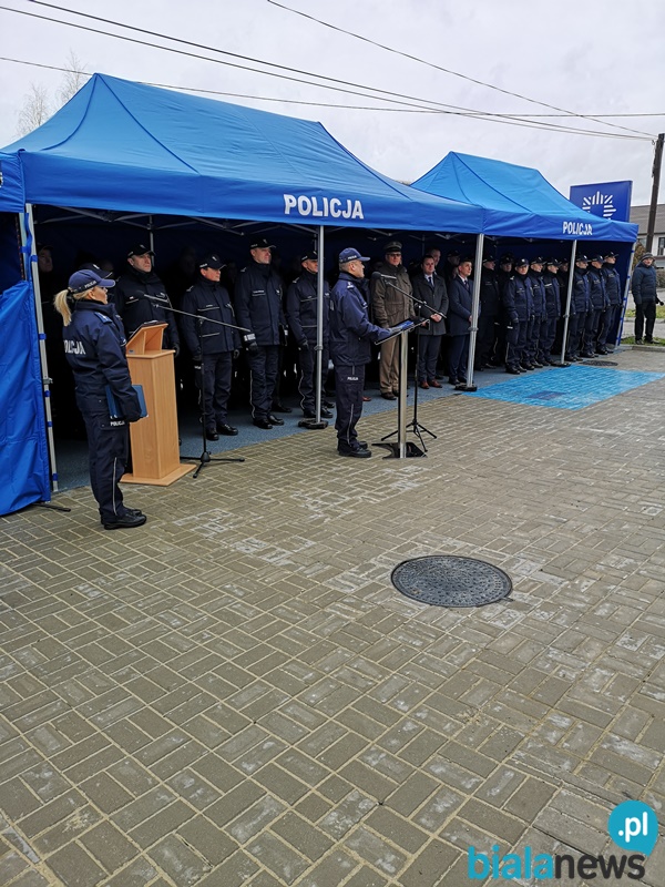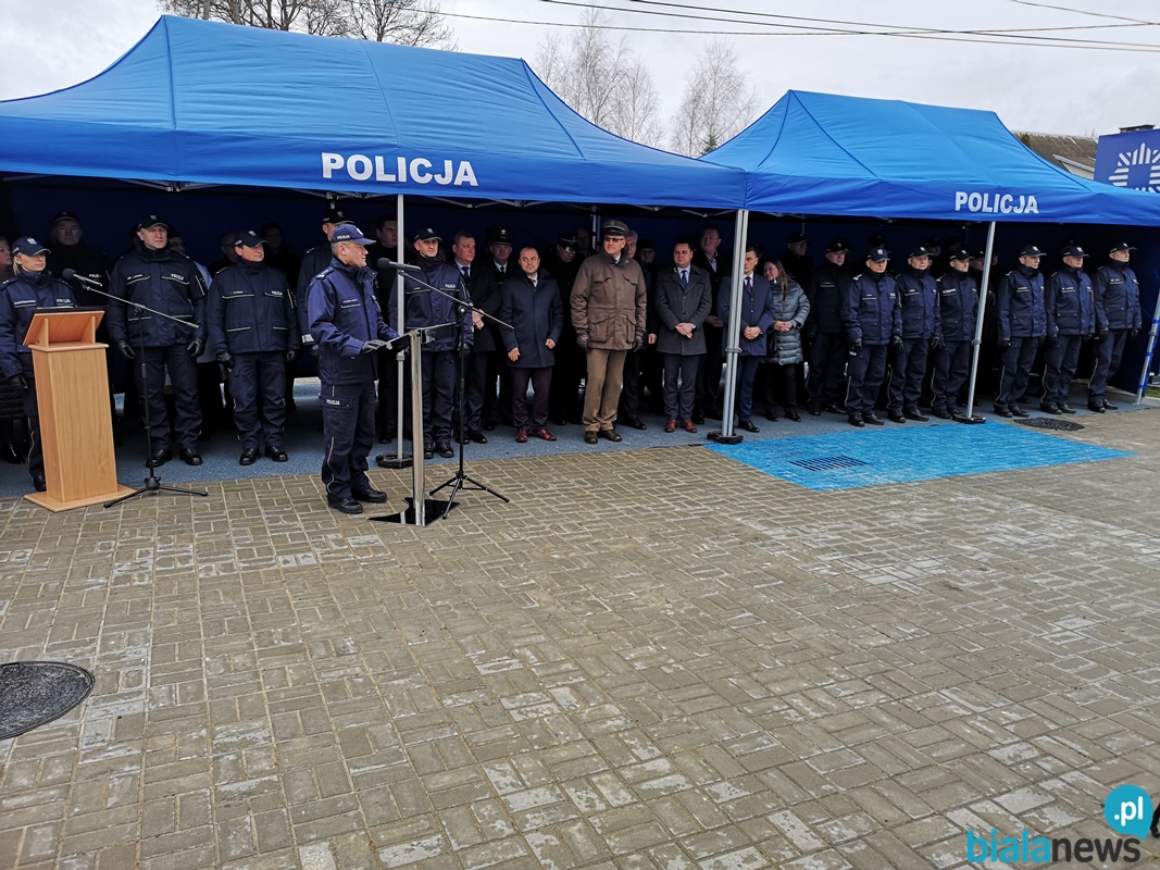 Przybyłych gości powitał p.o. Komendanta Miejskiego Policji w Białej Podlaskiej insp. Wojciech Czapla. Szef bialskich stróżów prawa w swoim wystąpieniu podziękował wszystkim tym, którzy przyczynili się do powstania tego obiektu. Komendant słowa podziękowania skierował w szczególności do Wójta Gminy Sławatycze, który przekazał działkę pod budowę nowego komisariatu.