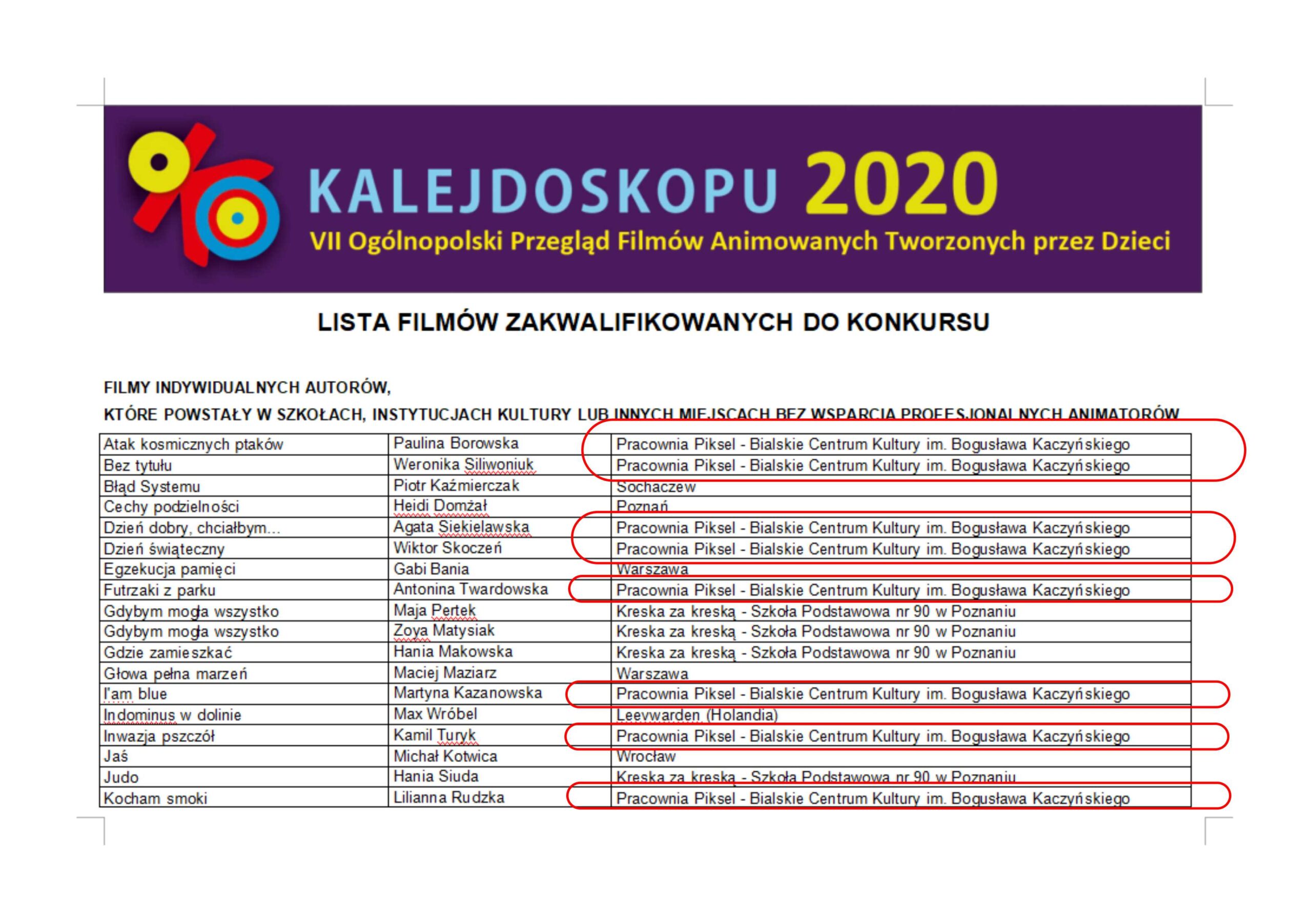 Aż 23 filmy autorstwa podopiecznych Pracowni Piksel z Bialskiego Centrum Kultury zostały zakwalifikowane do VII Ogólnopolskiego Przeglądu Filmów Animowanych Oko Kalejdoskopu. W projekcie zostanie zaprezentowanych łącznie 190 prac stworzonych przez dzieci z całego kraju.