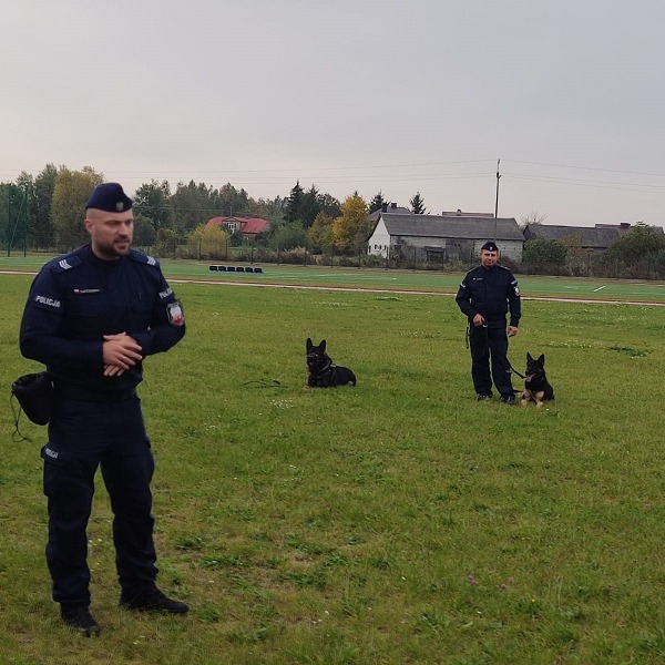 Na dzieci uczestniczące w spotkaniu czekała dodatkowa atrakcja. Spotkanie z przewodnikami psów służbowych. Aspirant Mariusz Wójcik oraz sierżant sztabowy Dariusz Koczkodaj opowiedzieli o wyjątkowej służbie z czworonogami. Pod czujnym okiem przewodników policyjne psy „Lapis” oraz „Polon” pokazały zebranym cząstkę swoich umiejętności podczas przygotowanego na tę okazję pokazu elementów tresury. „Czworonożni funkcjonariusze” chętnie też pozowali do wspólnych fotografii. Spotkanie na pewno długo pozostanie w pamięci najmłodszych.