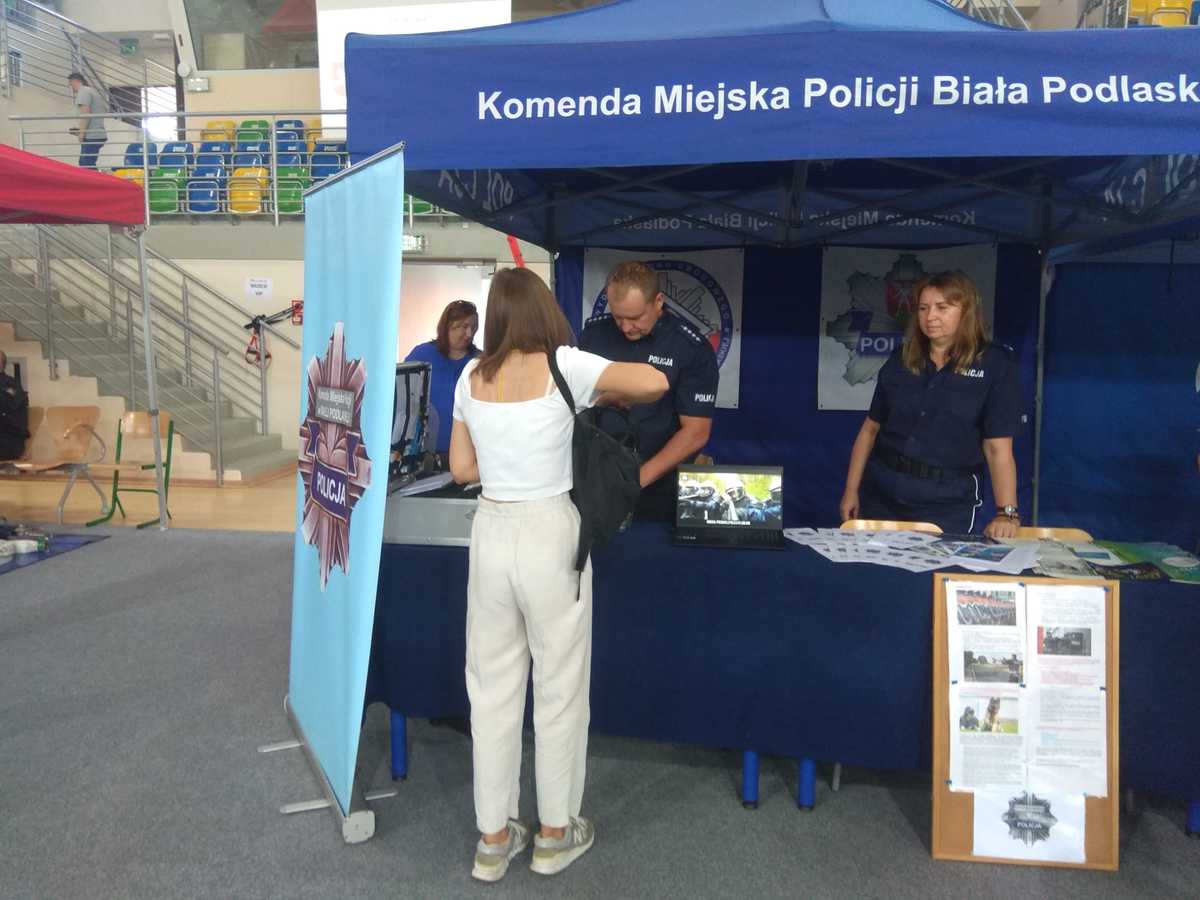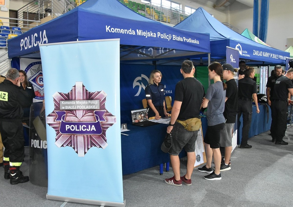 Bialskich policjantów reprezentował Komendant Miejski Policji w Białej Podlaskiej, insp. Wojciech Czapla. Przygotowano również stoisko informacyjne. Osoby poszukujące pracy miały możliwość bezpośredniego uzyskania szczegółowych informacji dotyczących służby w Policji. Funkcjonariusze przybliżyli osobom zainteresowanym zawód policjanta, a także poszczególne etapy postępowania kwalifikacyjnego oraz informacje o codziennej służbie mundurowych. Była również możliwość obejrzenia jak wygląda obecnie test sprawności fizycznej będący jednym z etapów postępowania.