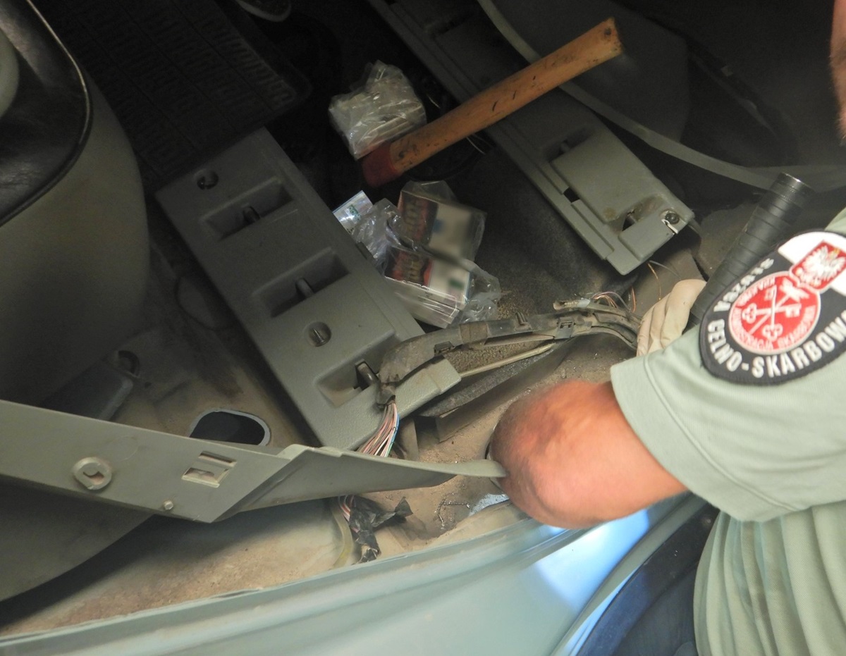 W Oddziale Celnym Drogowym w Terespolu funkcjonariusze zrewidowali natomiast samochód osobowy, którym podróżował 31-letni obywatel naszego kraju. Mężczyzna wręcz „jechał” na kontrabandzie. Papierosy, łącznie 257 paczek, ukrył w specjalnych skrytkach w błotniku, nadkolu, podłodze i zderzaku pojazdu.