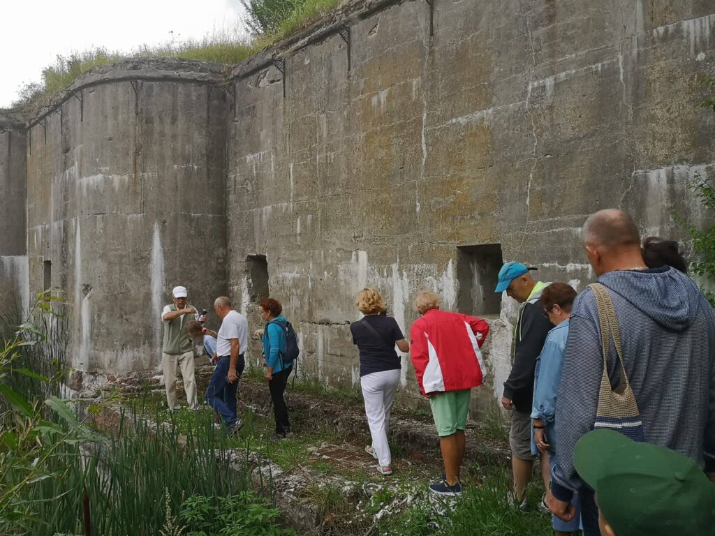 Pierwszym etapem rajdu był fort w Łobaczewie Małym, który w fachowej nomenklaturze nosi nazwę Fortu VII. Jest on najbardziej reprezentatywny, odkryty z nawałów ziemi i najbardziej przystosowany do zwiedzania spośród wszystkich fortów rozmieszczonych wokół Terespola. Rowerzystów przywitał i po obiekcie oprowadził pasjonujący się historią i fortyfikacją Karol Niczyporuk – redaktor portalu internetowego ,,Forty i my”. Przewodnik szczegółowo omówił funkcje jakie pełniły poszczególne bunkry. Nasz przewodnik przygotował dodatkowo wystawę zdjęć i publikacji m.in. o Twierdzy w Brześciu przytaczając całą jej historię. Pan Karol opiekuje się ,,swoim” fortem społecznie od 6 lat.
