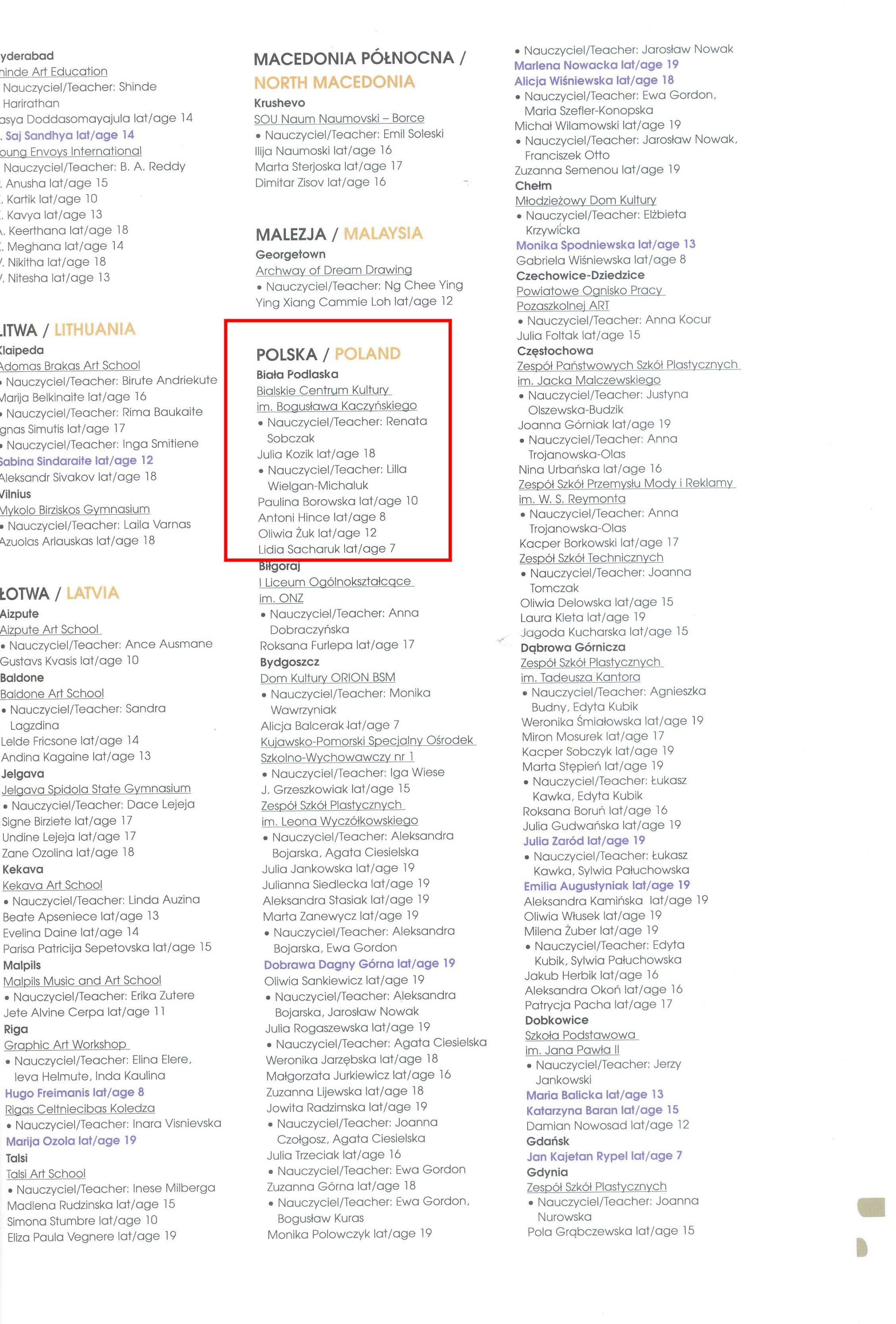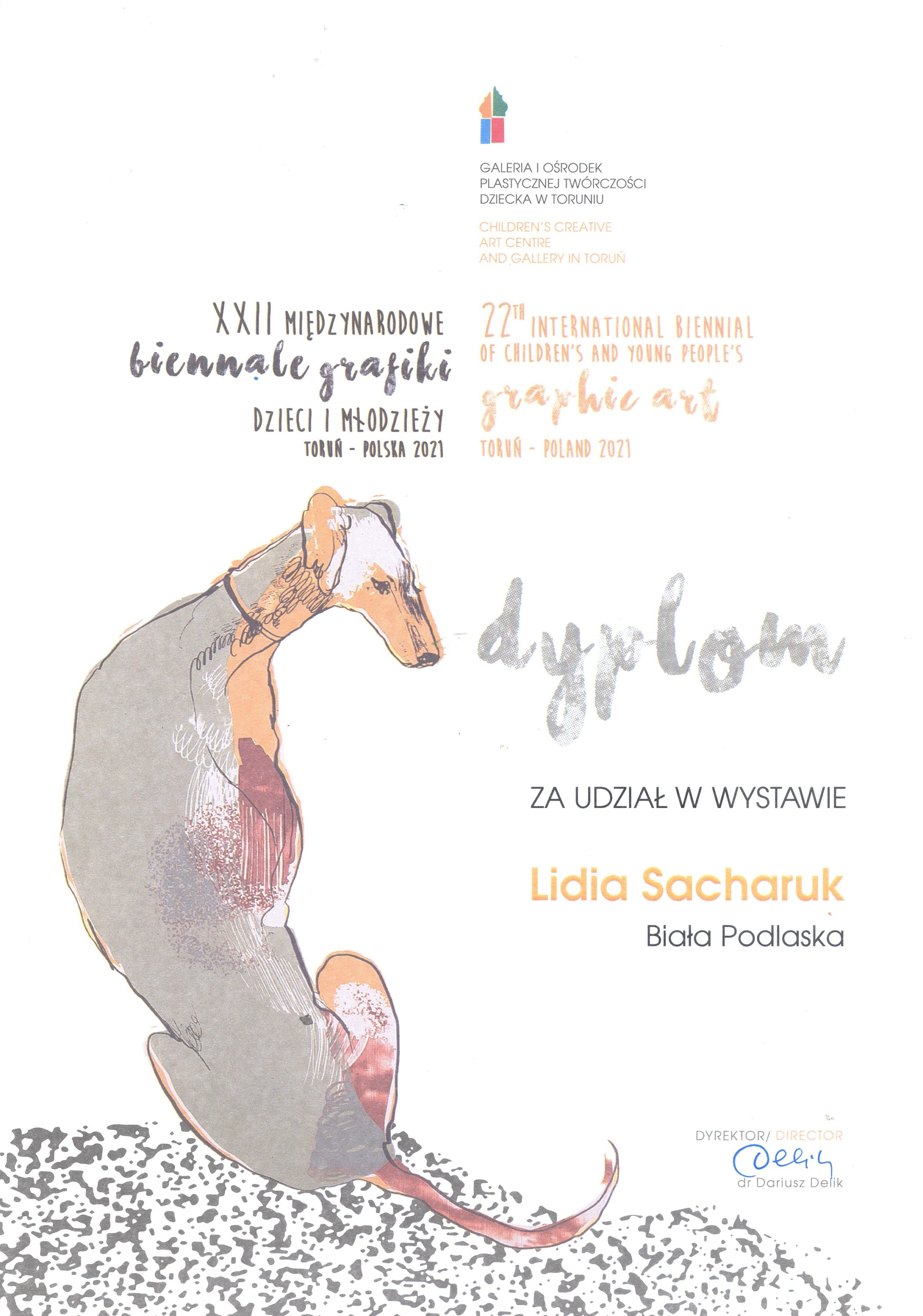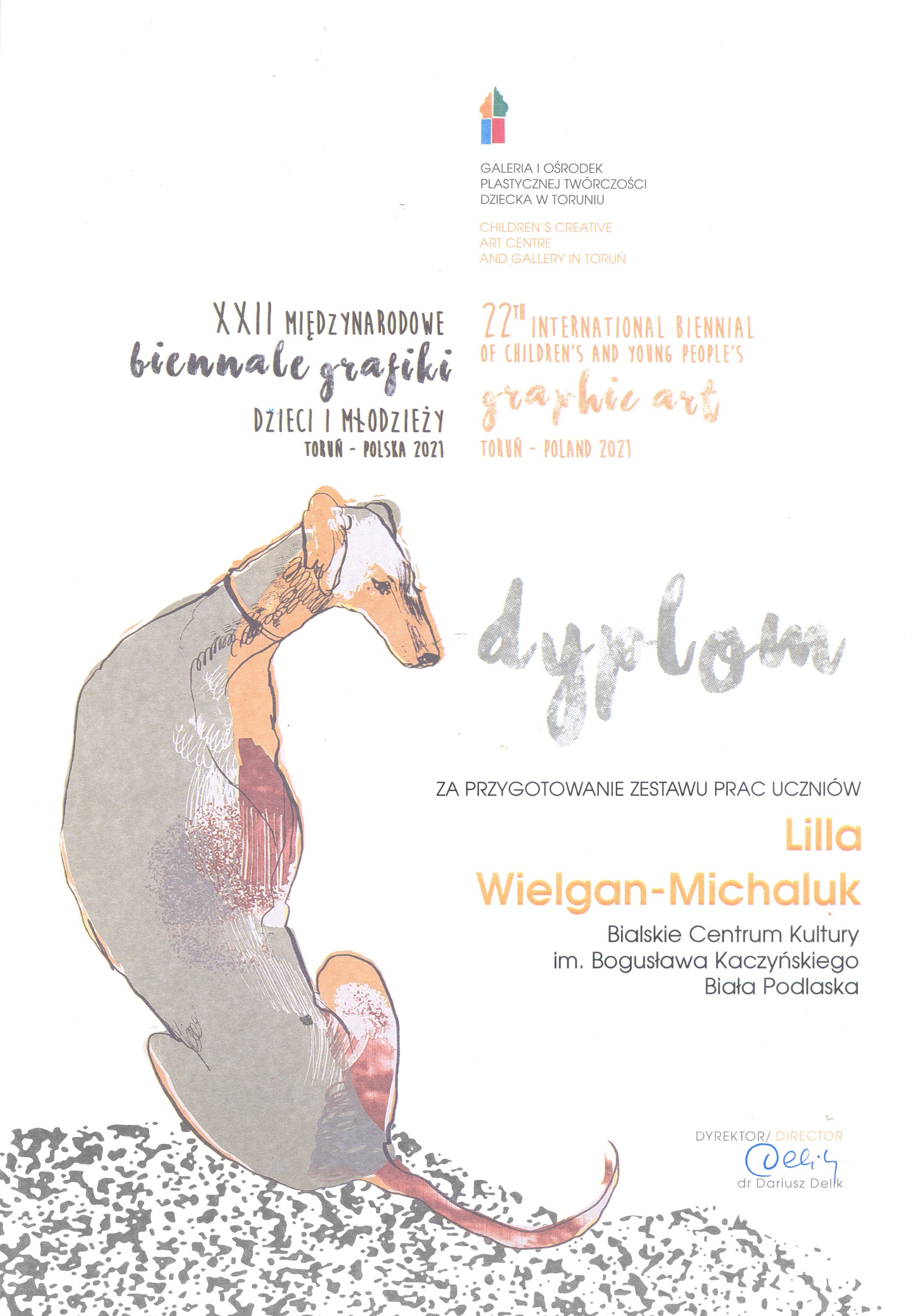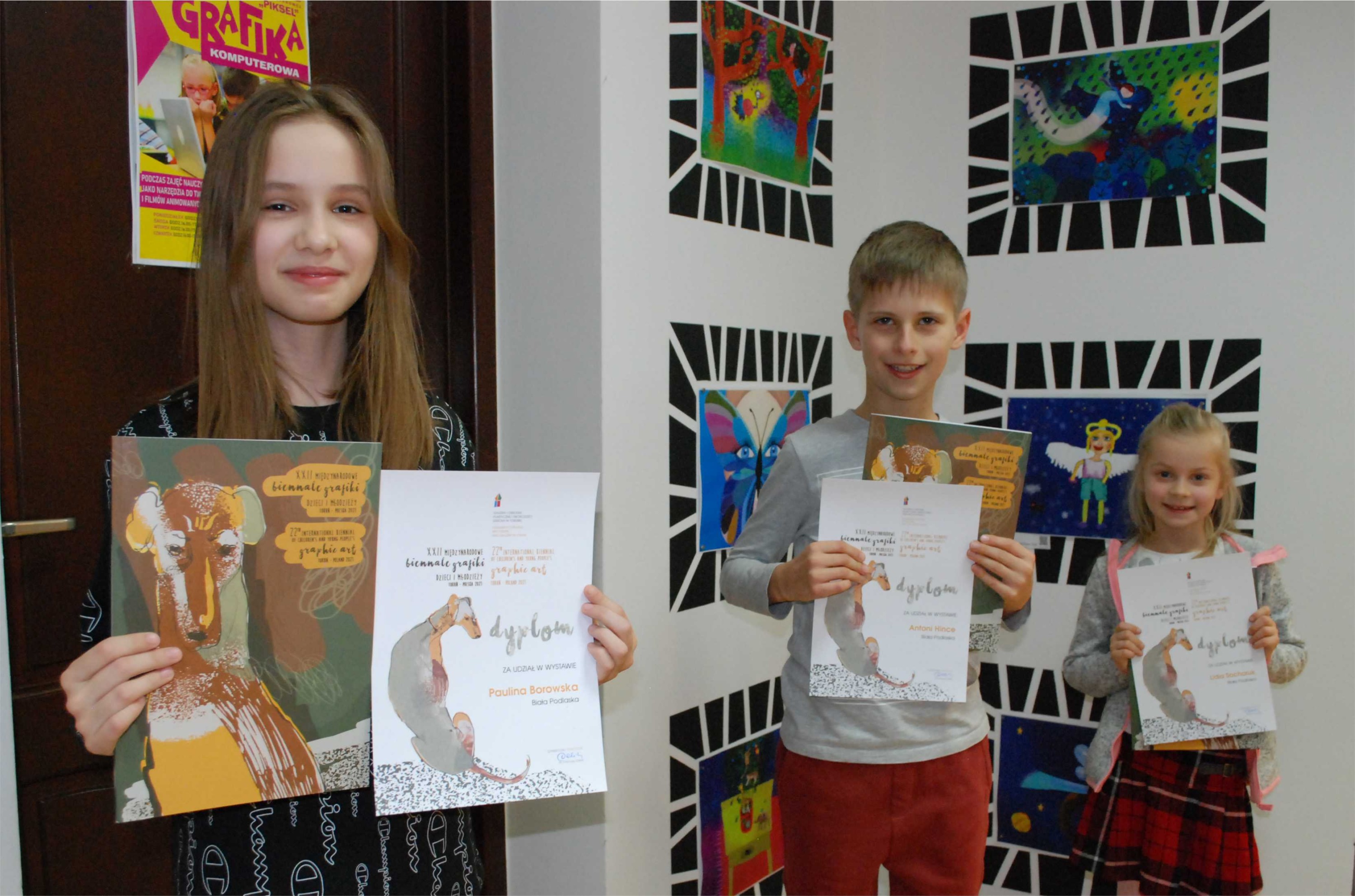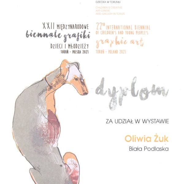 Do kolekcji sukcesów podopiecznych pani Lilli Wielgan-Michaluk z Pracowni Grafiki Komputerowej „Piksel” miło nam dorzucić kolejne tryumfy przyznane podczas XXII Międzynarodowego Biennale Grafiki Dzieci i Młodzieży Toruń – Polska 2021, którego organizatorem jest Galeria i Ośrodek Plastycznej Twórczości Dziecka w Toruniu przy współudziale: Ministerstwa Kultury, Dziedzictwa Narodowego i Sportu w Warszawie i Urzędu Marszałkowskiego Województwa Kujawsko-Pomorskiego w Toruniu oraz Urzędu Miasta Torunia. Bowiem wśród zakwalifikowanych do wystawy pokonkursowej znalazły się 4 prace autorstwa wychowanków: Lidii Sacharuk, Antoniego Hince, Pauliny Borowskiej i Oliwii Żuk.